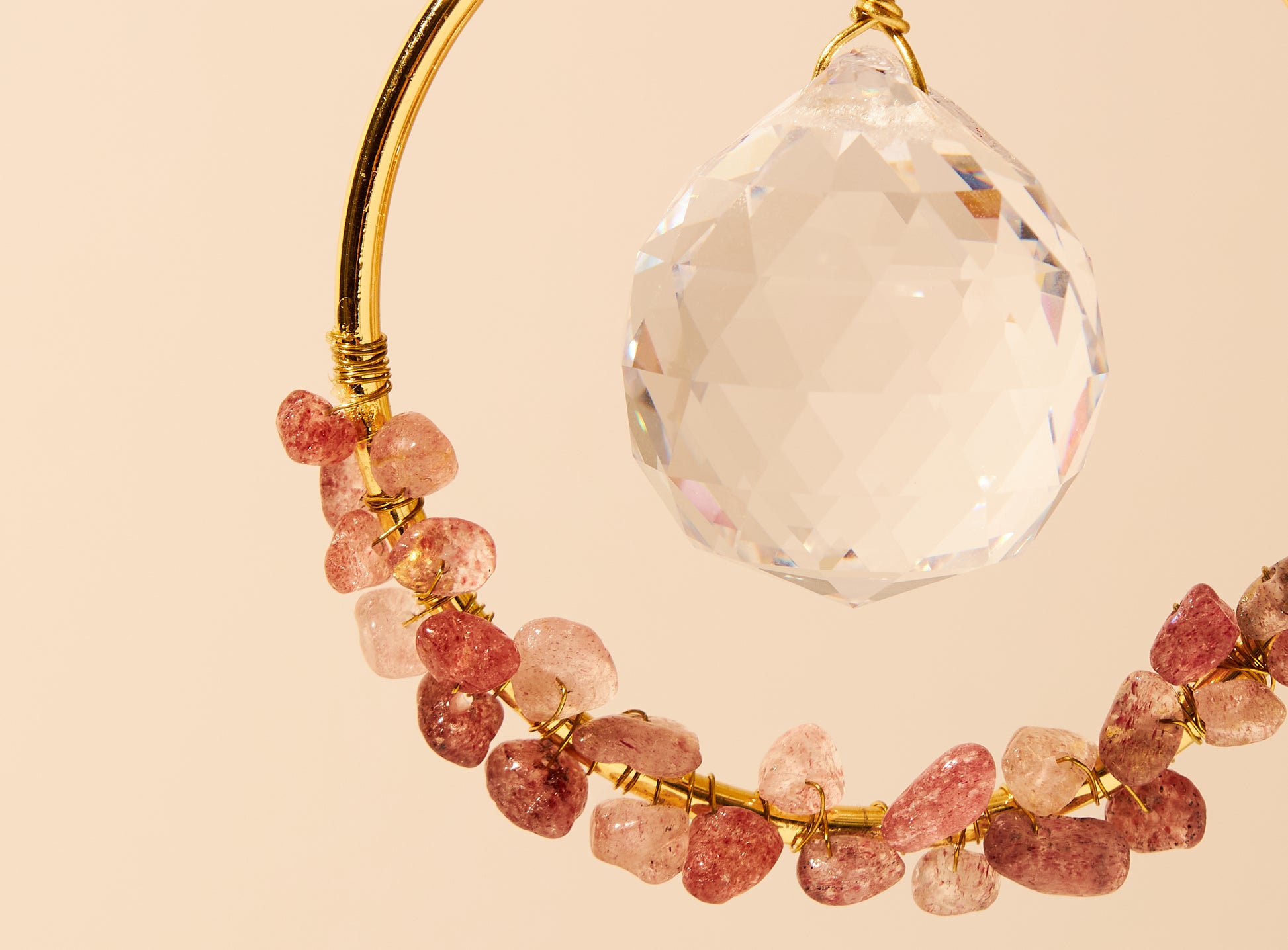 When your suncatcher meets the sun, a multitude of white and rainbow-colored points of light dance and settle on the walls or on what surrounds it, real magic...