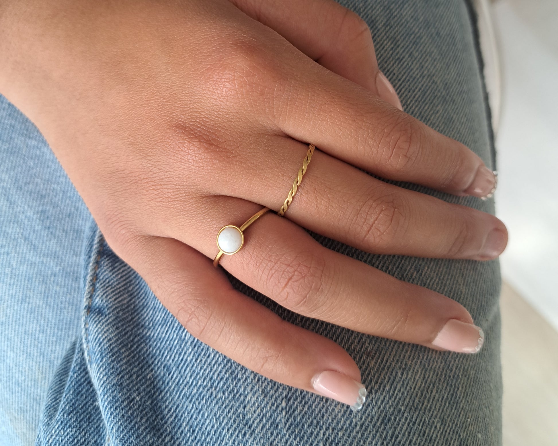 Bague fine Pierre de lune - Réglable