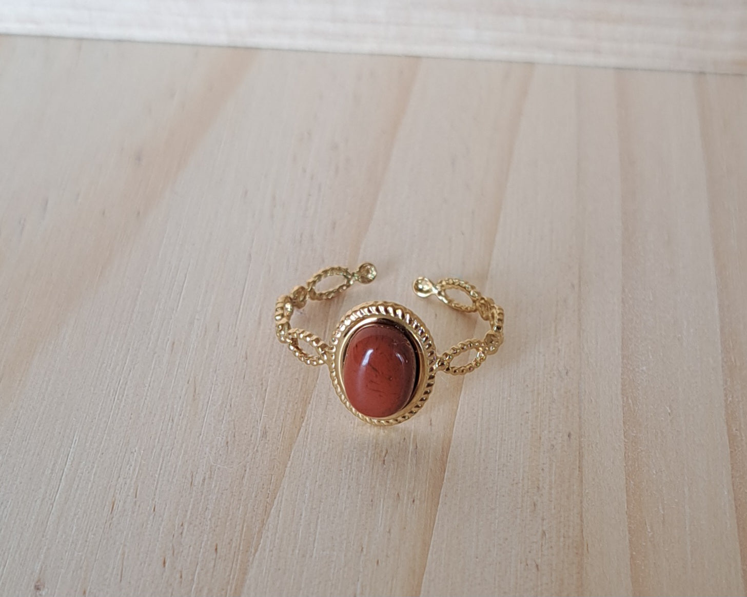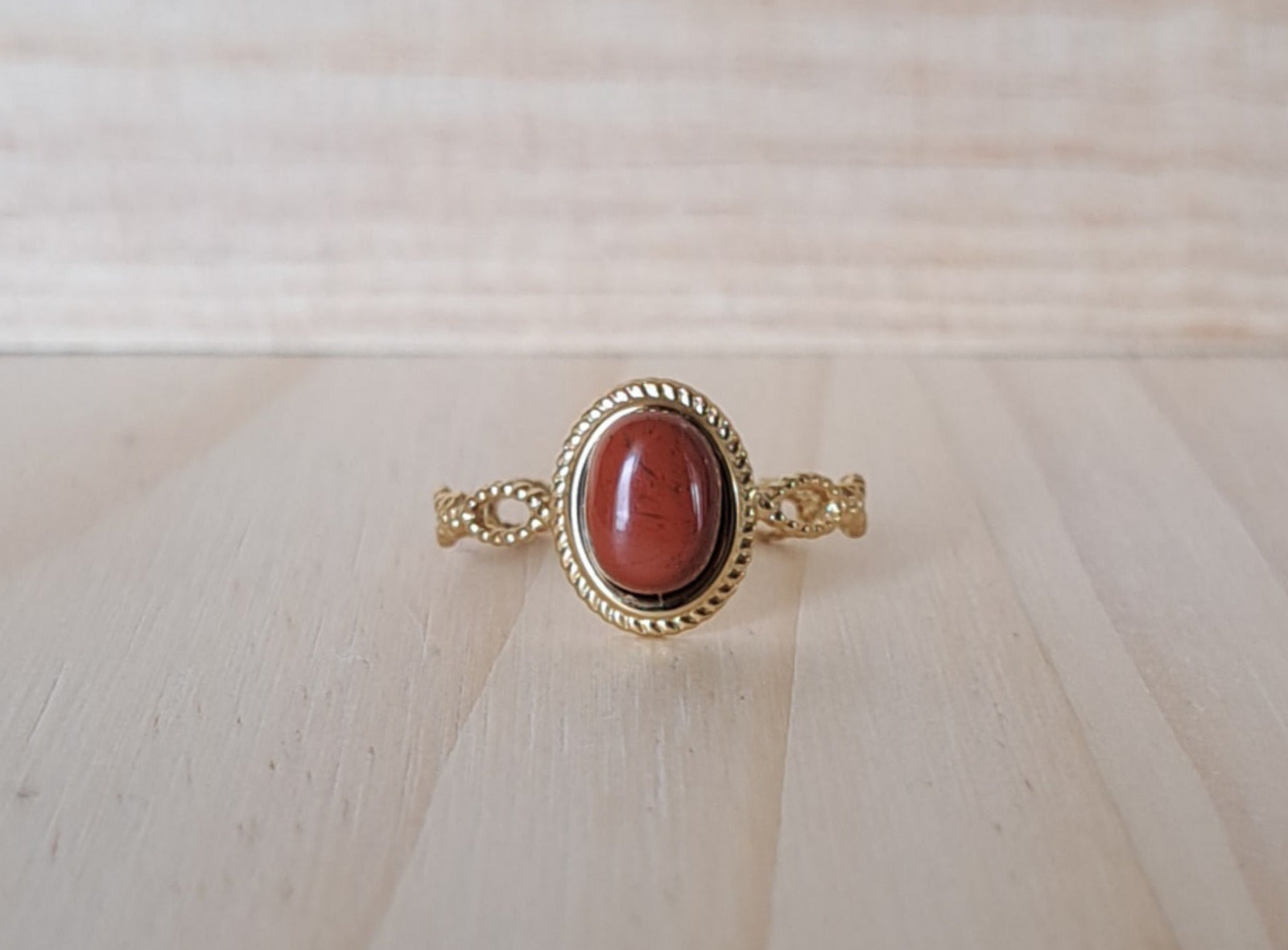 Bague sertie Jaspe rouge - Argentée ou dorée