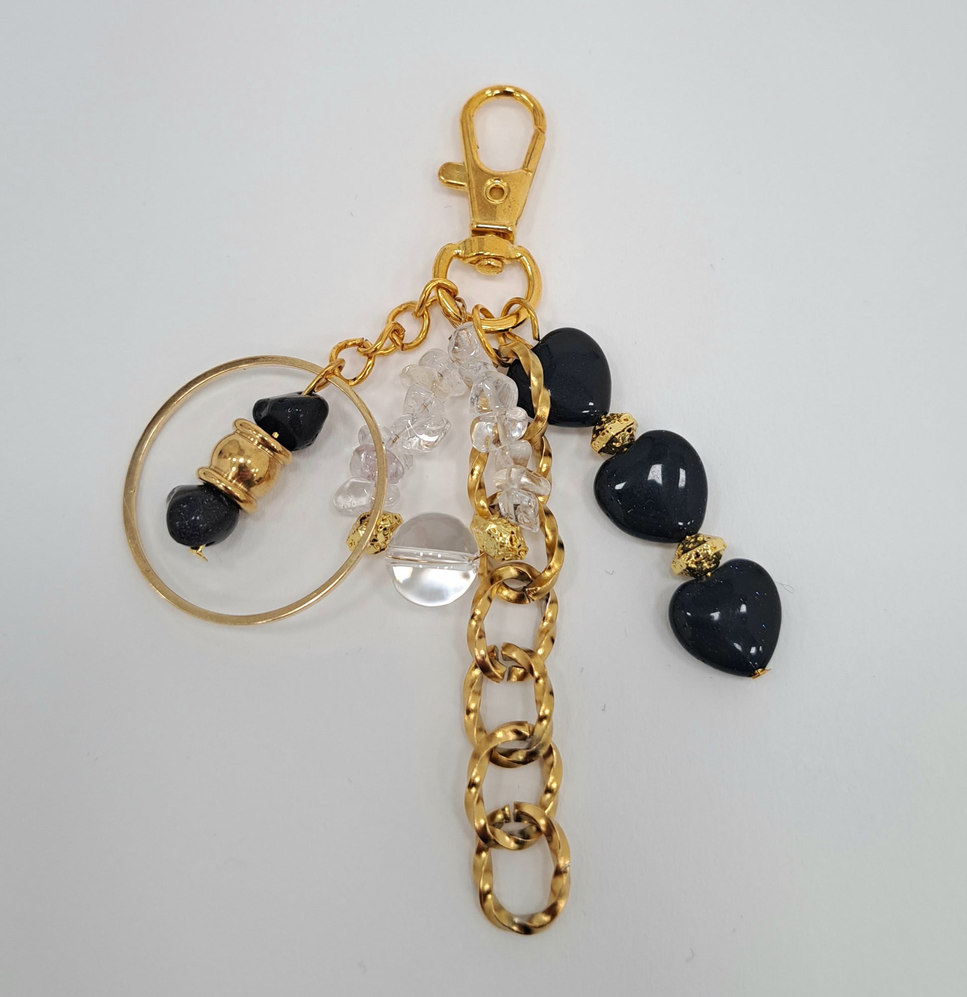 - Blue stone (pierre bleu marine pailletée): coeurs, perles de cristal de roche, une chaîne en acier inoxydable et éléments dorés