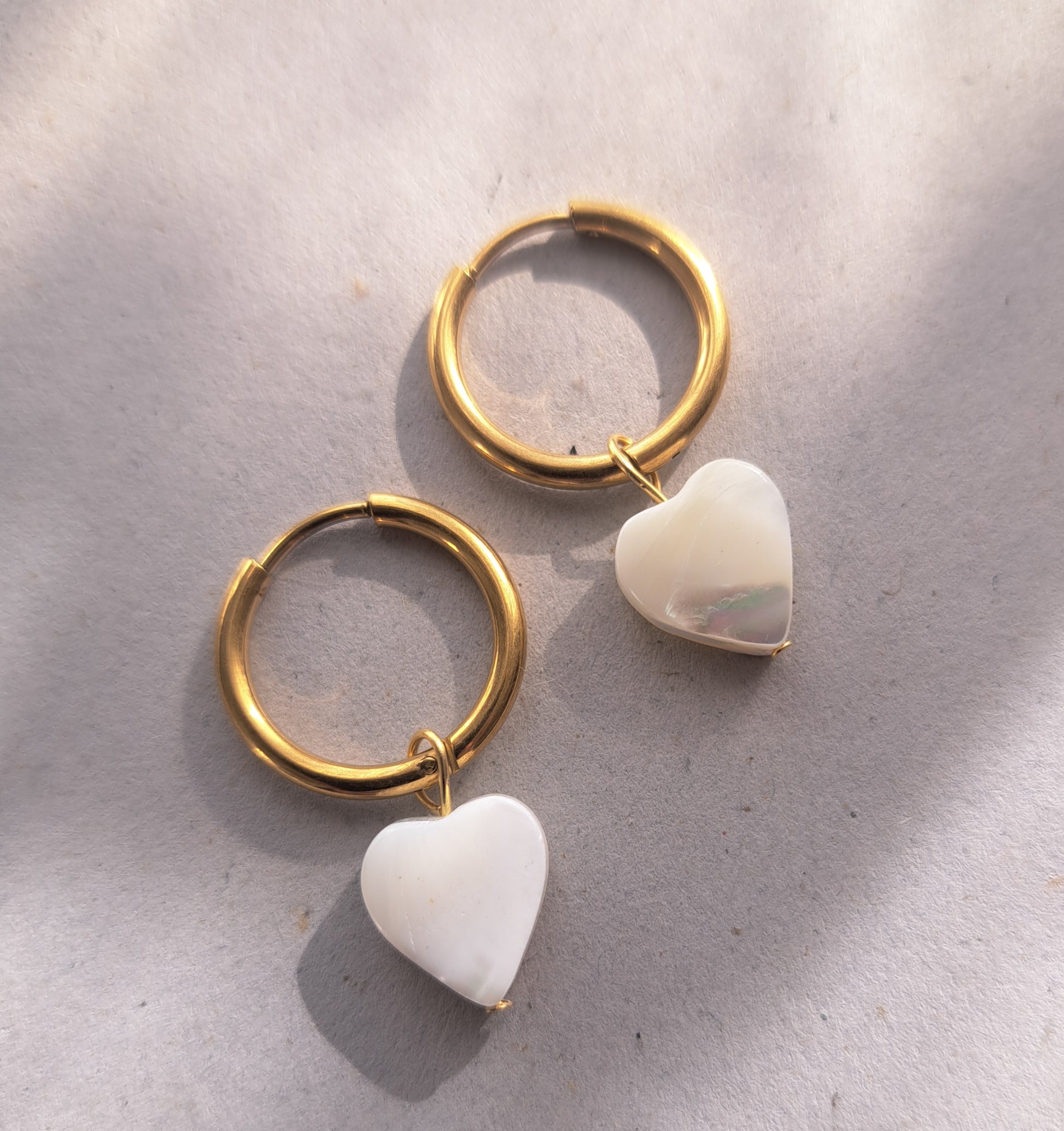 Boucles d'oreilles coeur nacre - Doré ou argenté