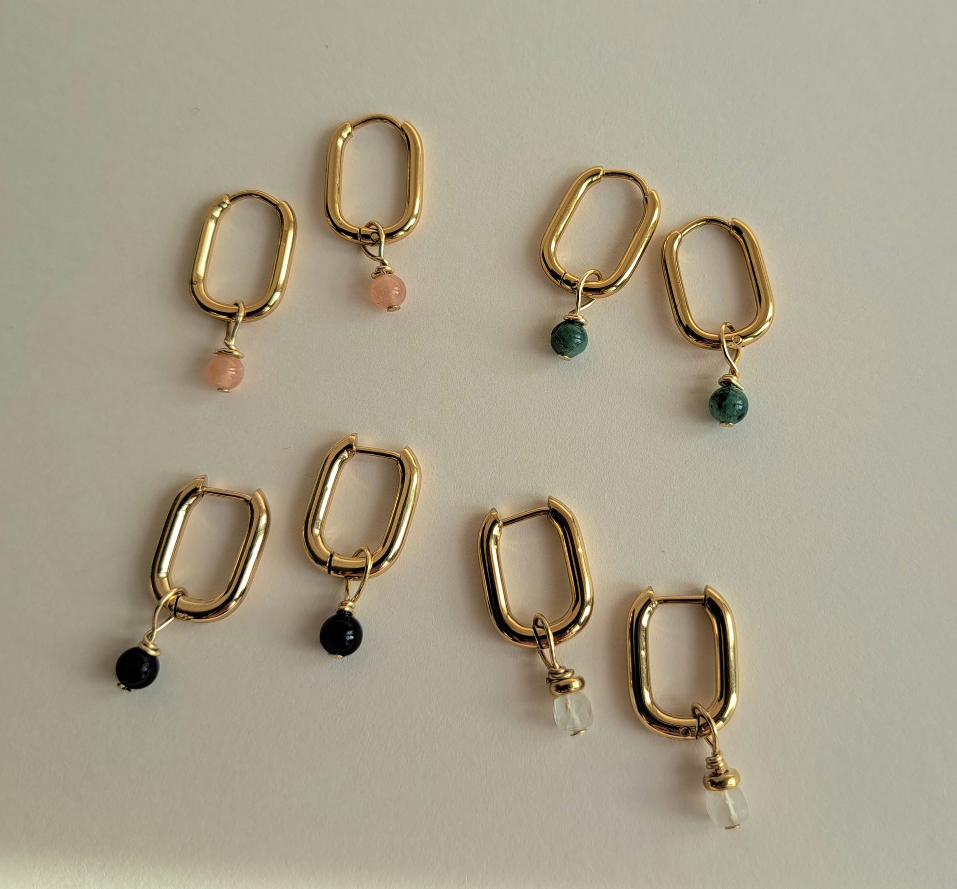 Ces boucles d'oreilles sont également disponibles en pierre de lune, tourmaline et pierre de soleil.