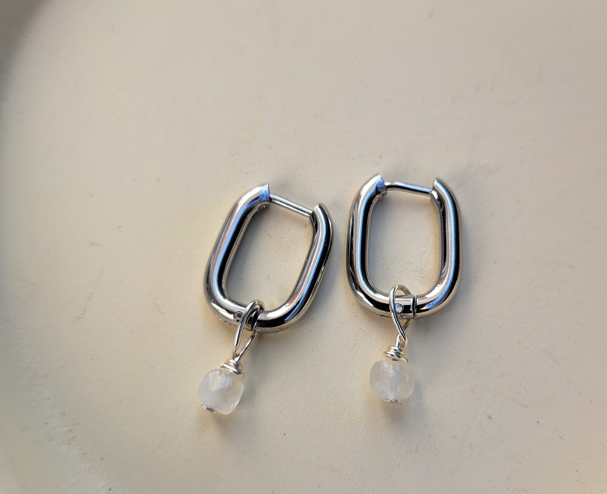 Boucles d'oreilles Pierre de lune - Doré ou argenté
