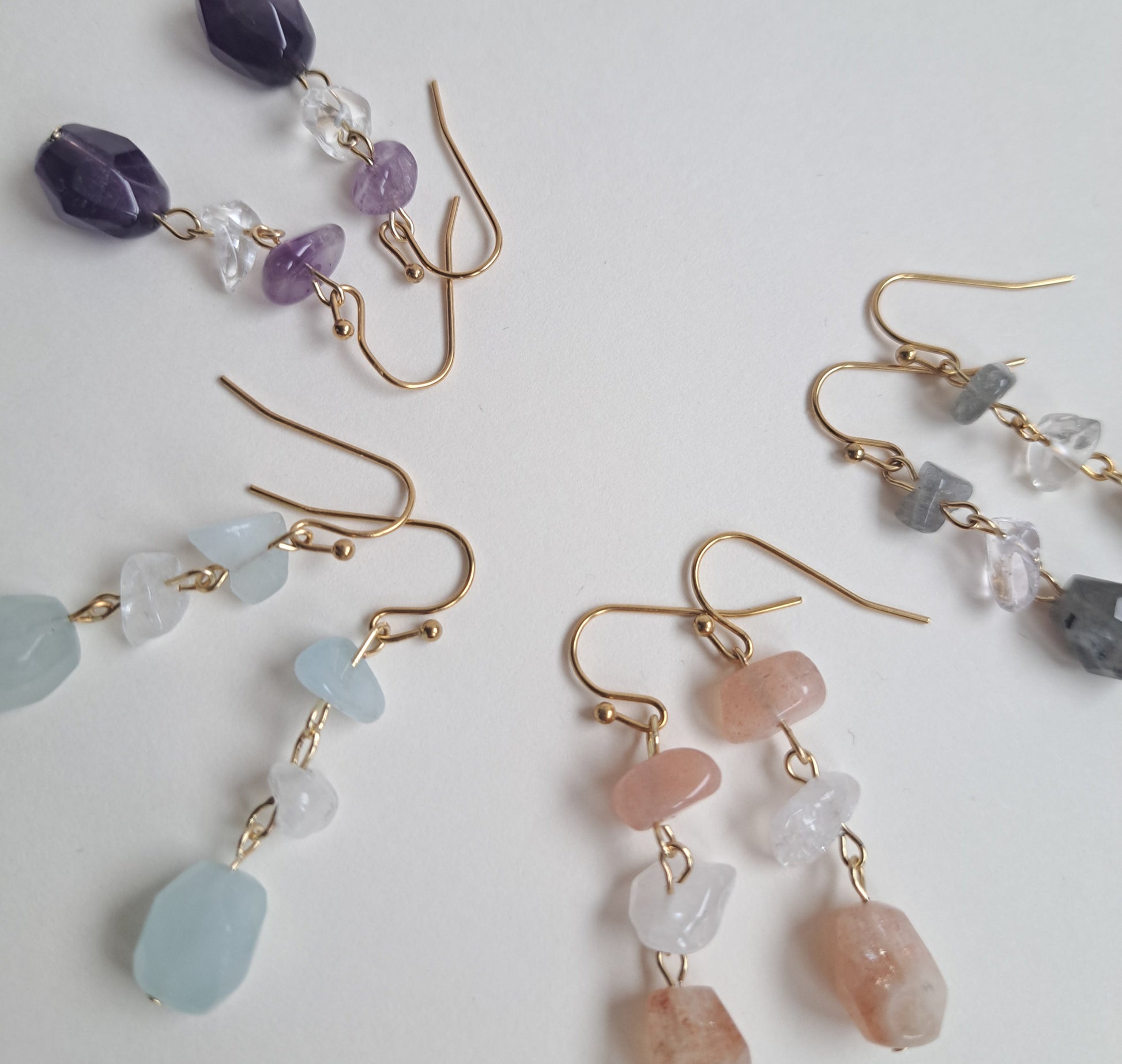 Boucles d'oreilles Pierres de soleil et Cristal de roche