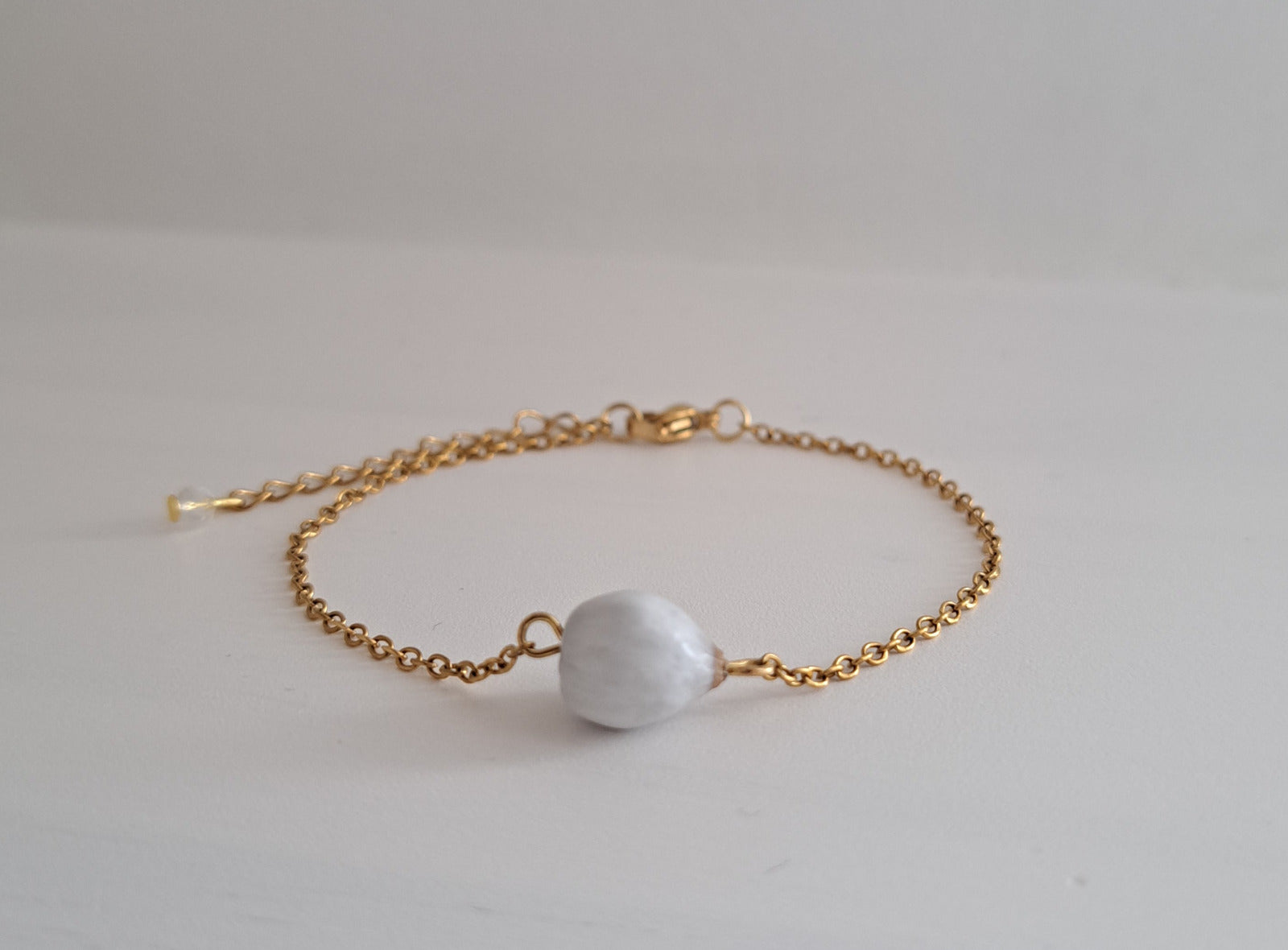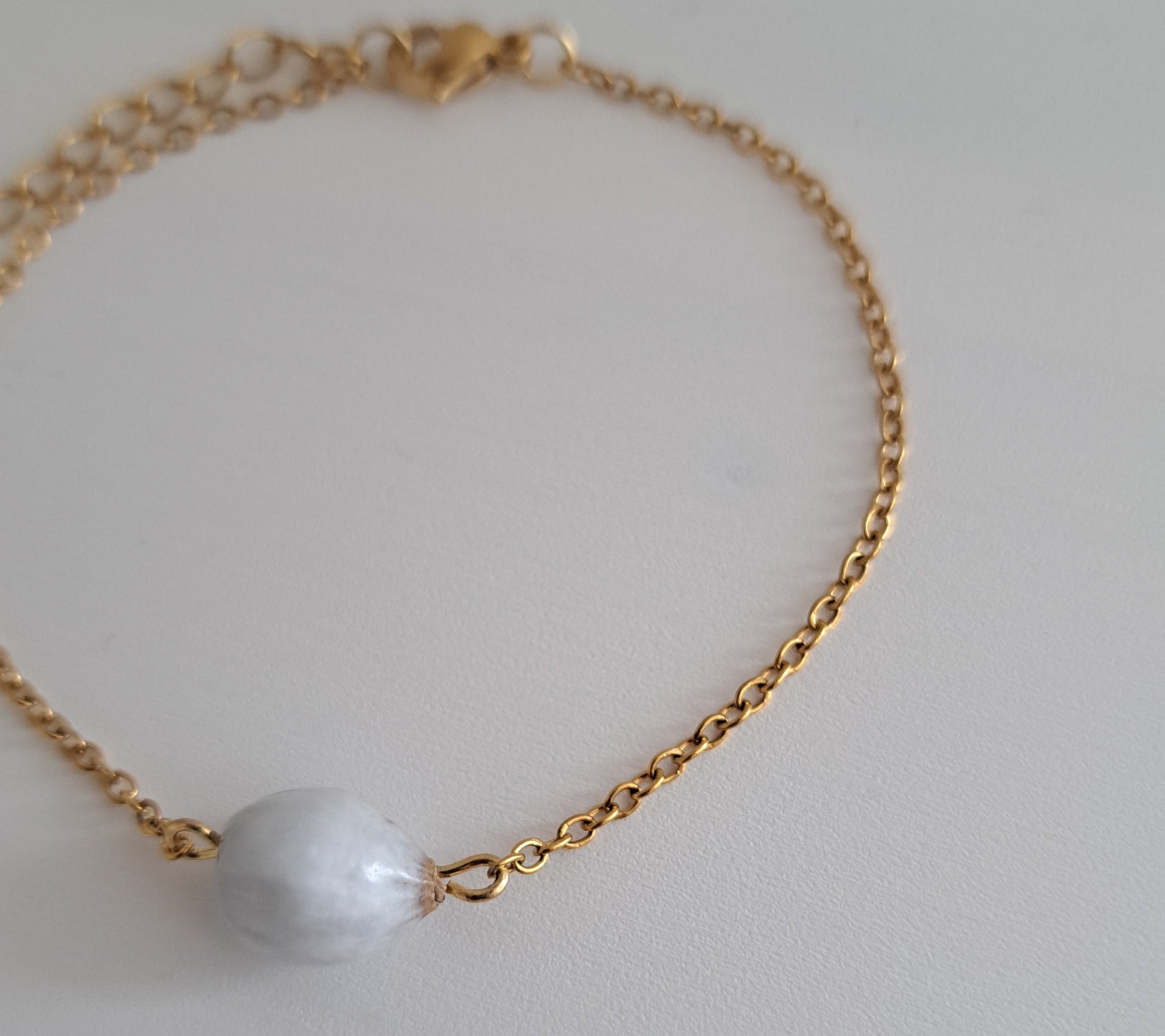 Fine bracelet composed of a golden stainless steel chain and a Job's tear seed.