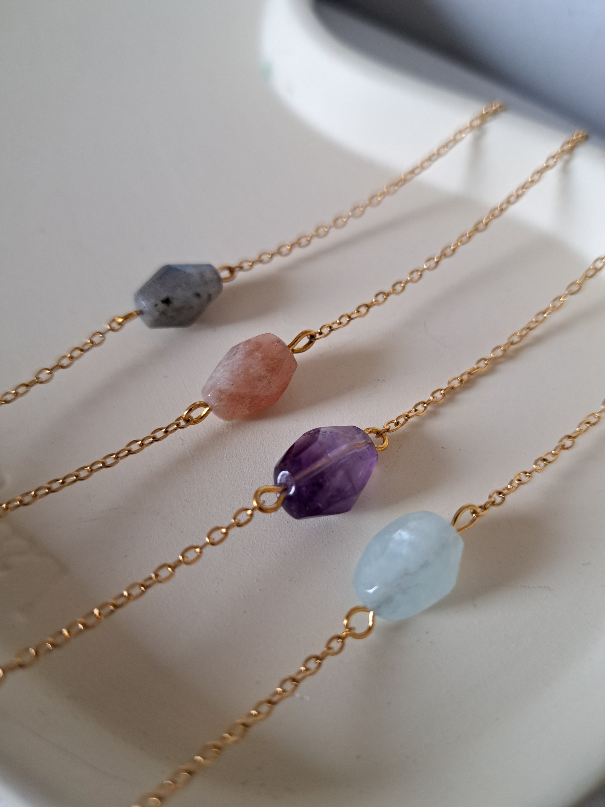 Les bijoux étant réalisés avec des pierres naturelles, leur taille et leur couleur peuvent varier de celles des images.