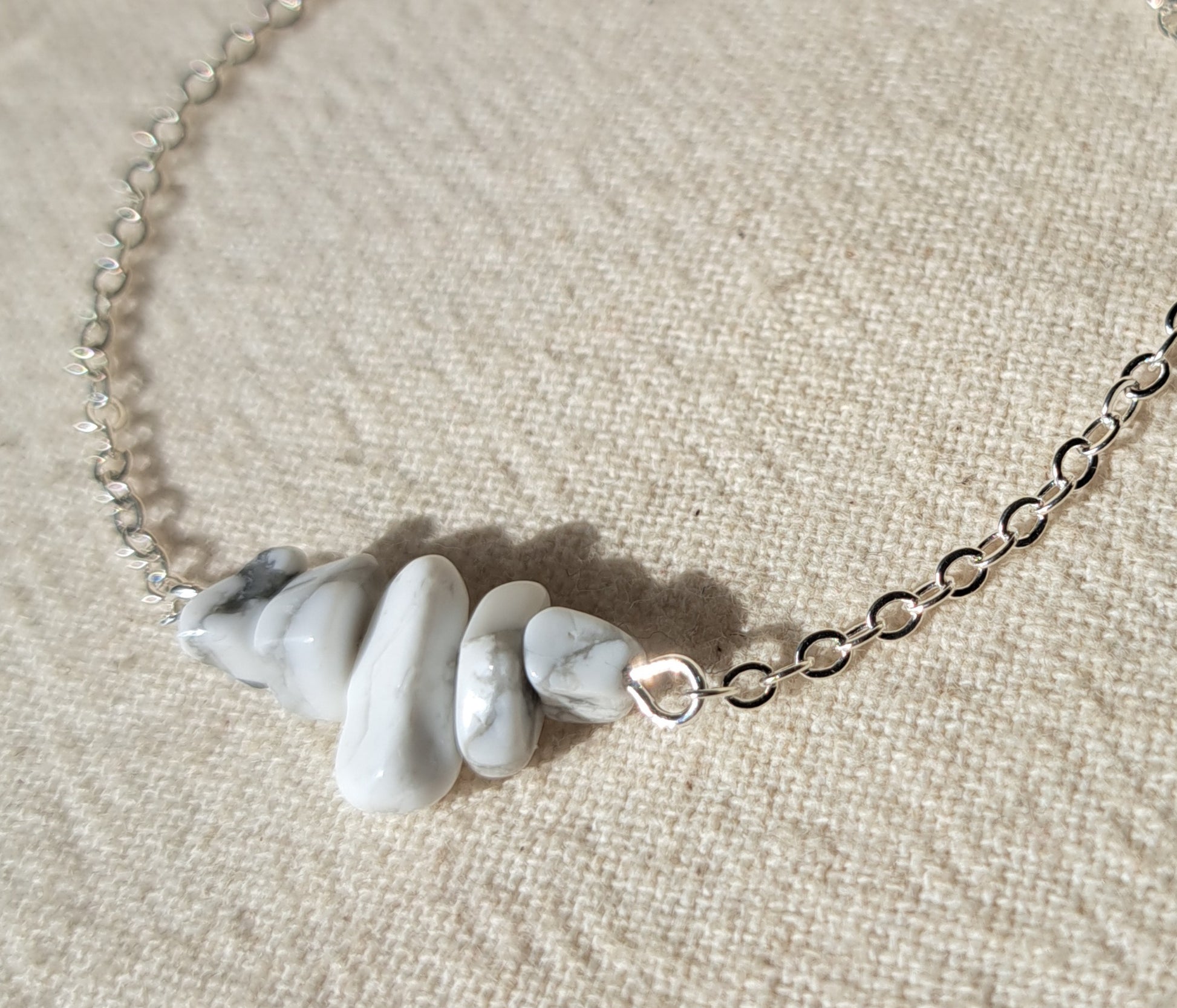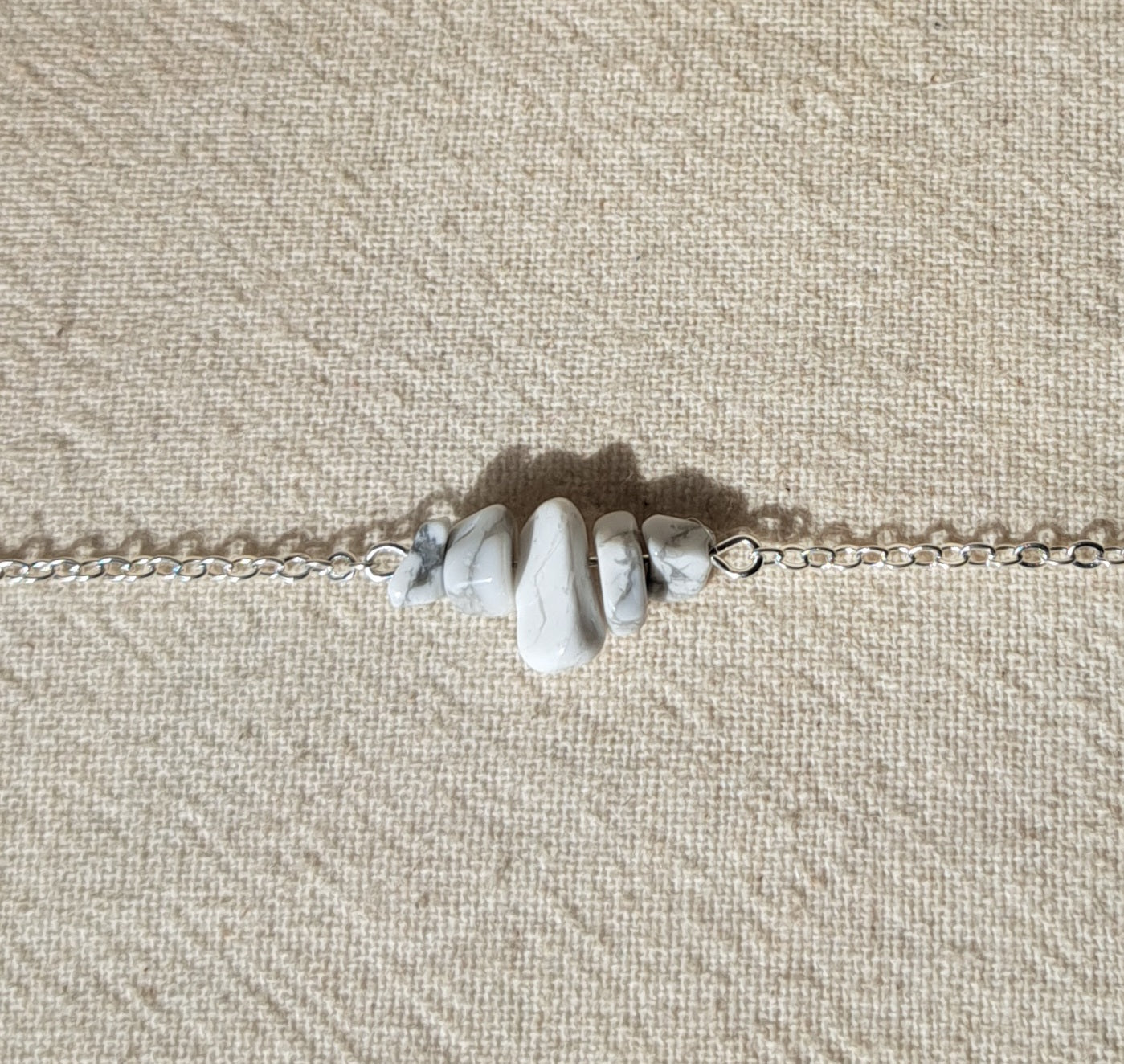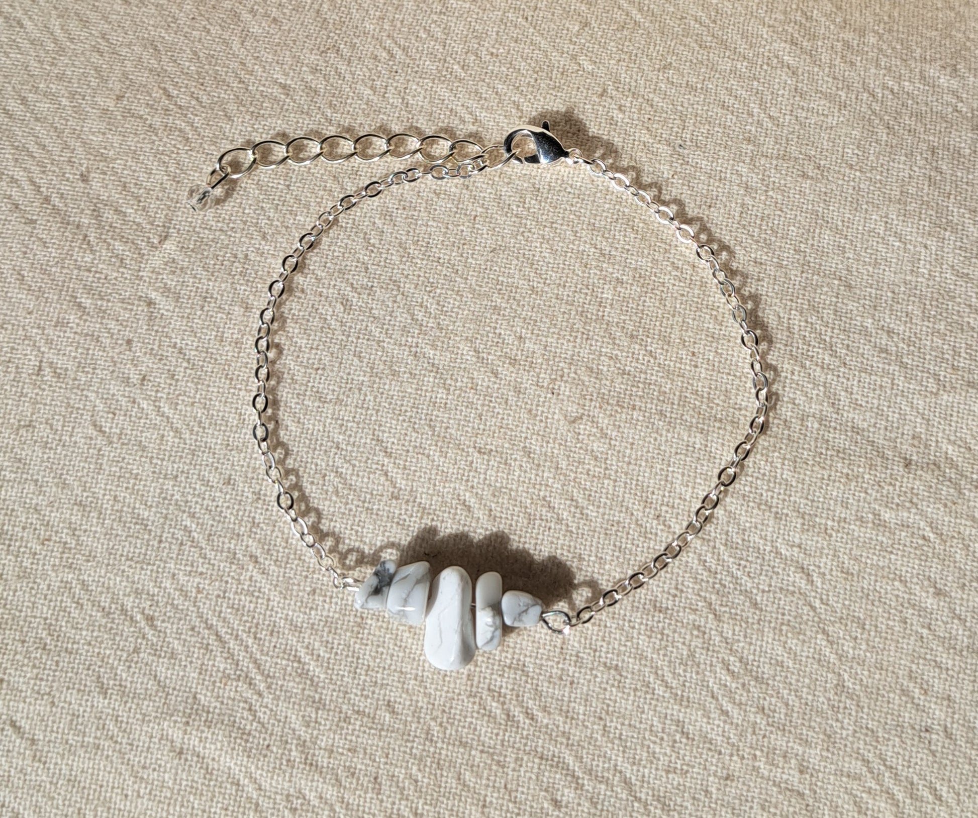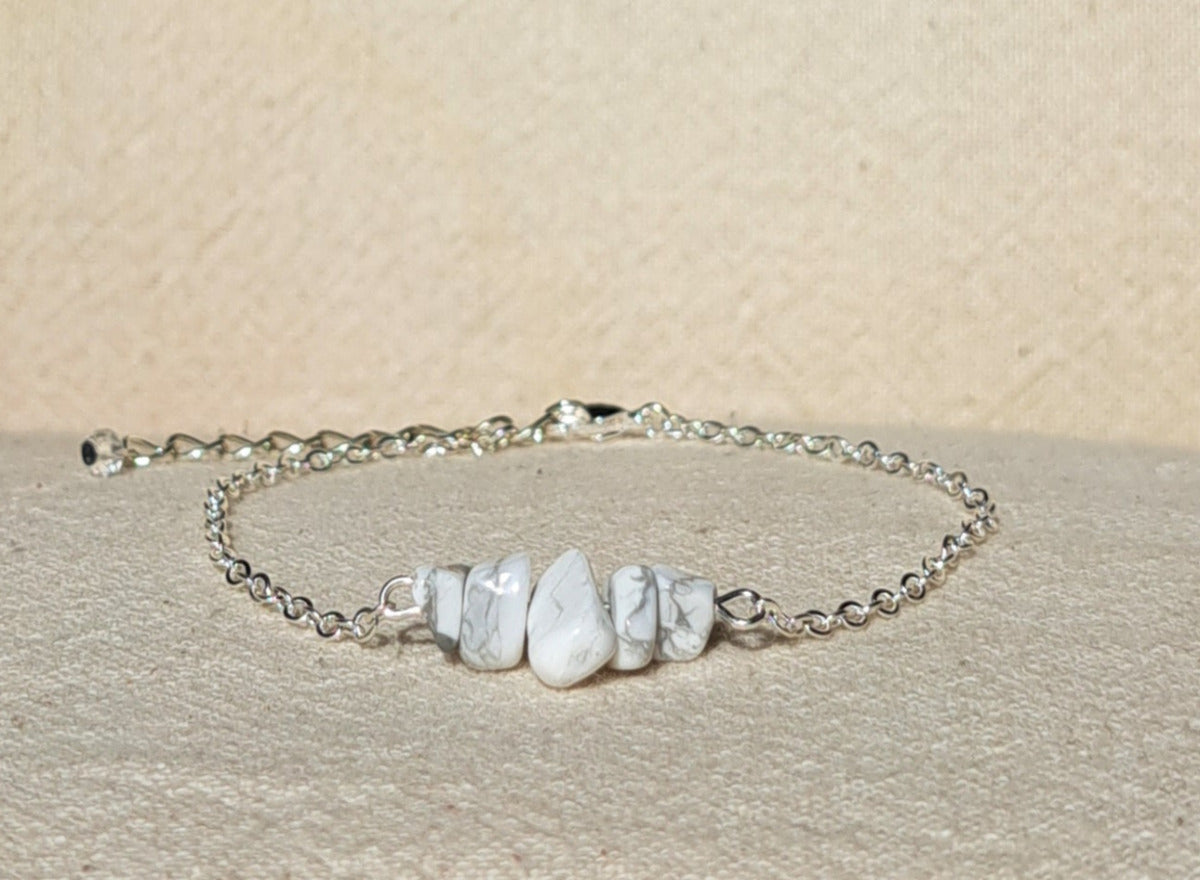 Fine bracelet composed of a silver stainless steel chain and howlite stones.