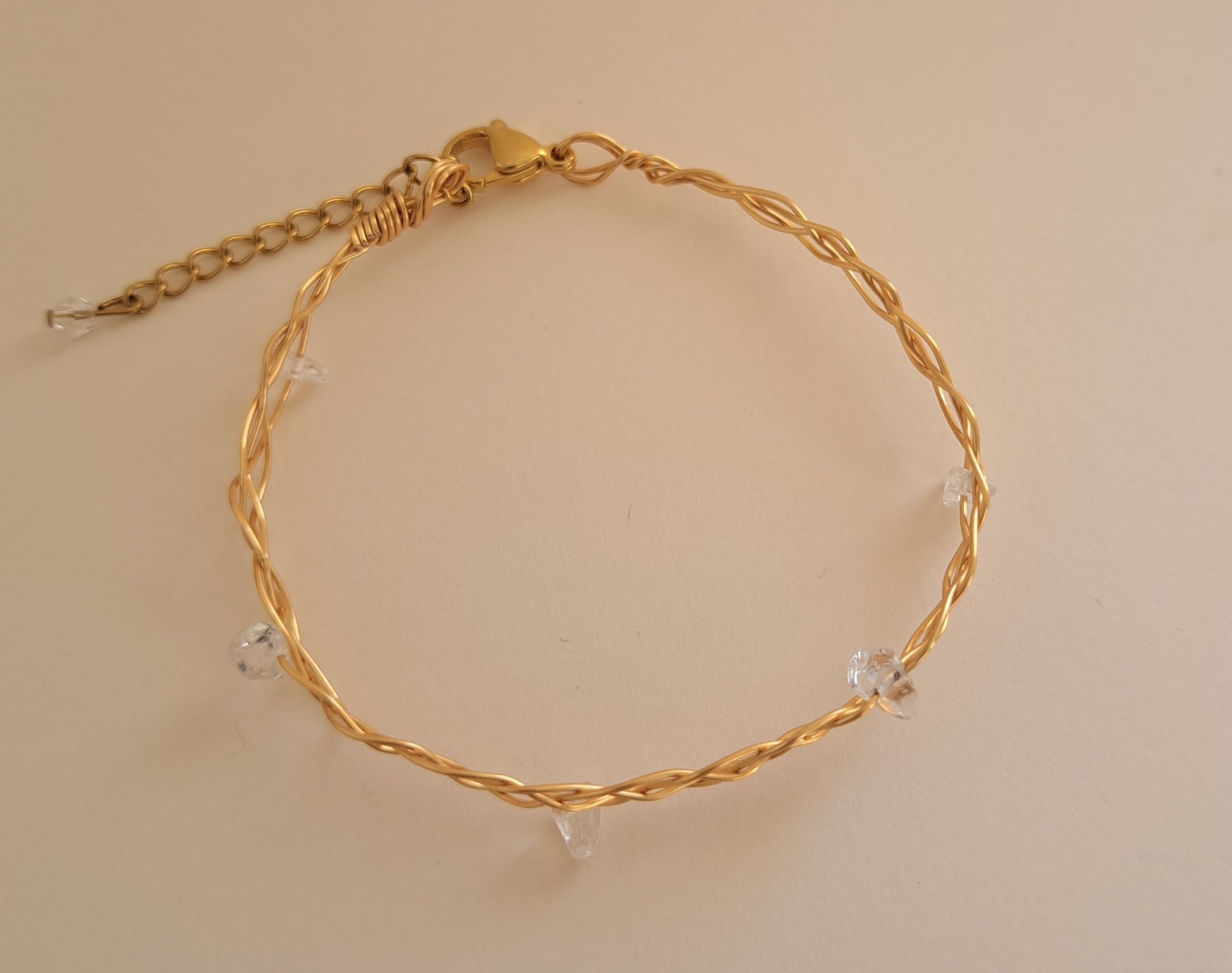 Bracelet fin composé d'une tresse de fil de laiton et de pierres naturelles de Cristal de roche.