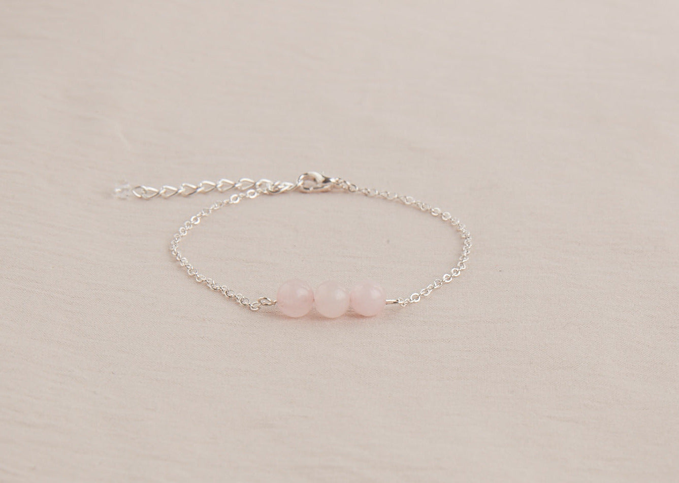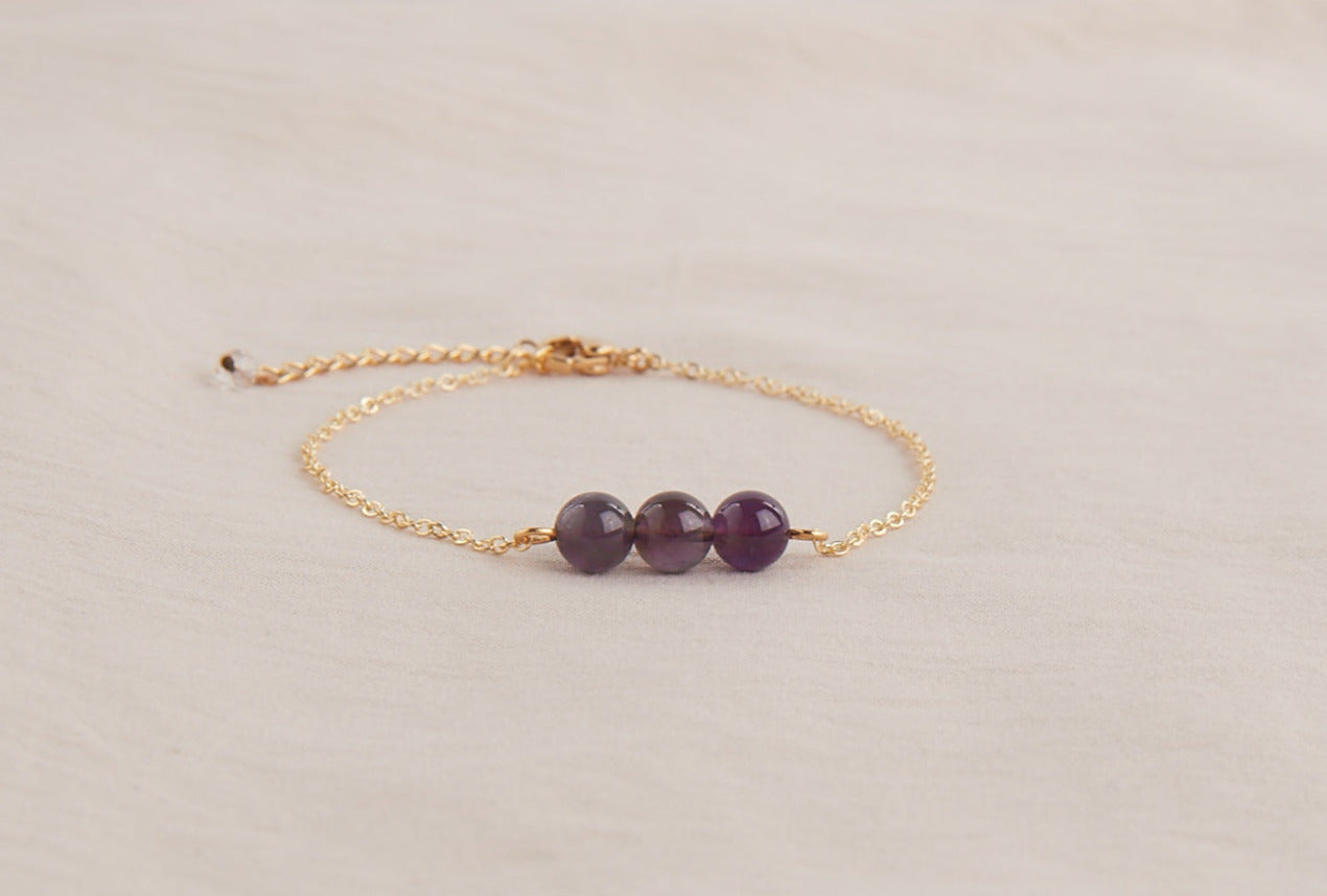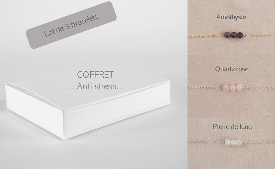 Set of 3 anti-stress stone bracelets: Amethyst, Rose Quartz and Moonstone.