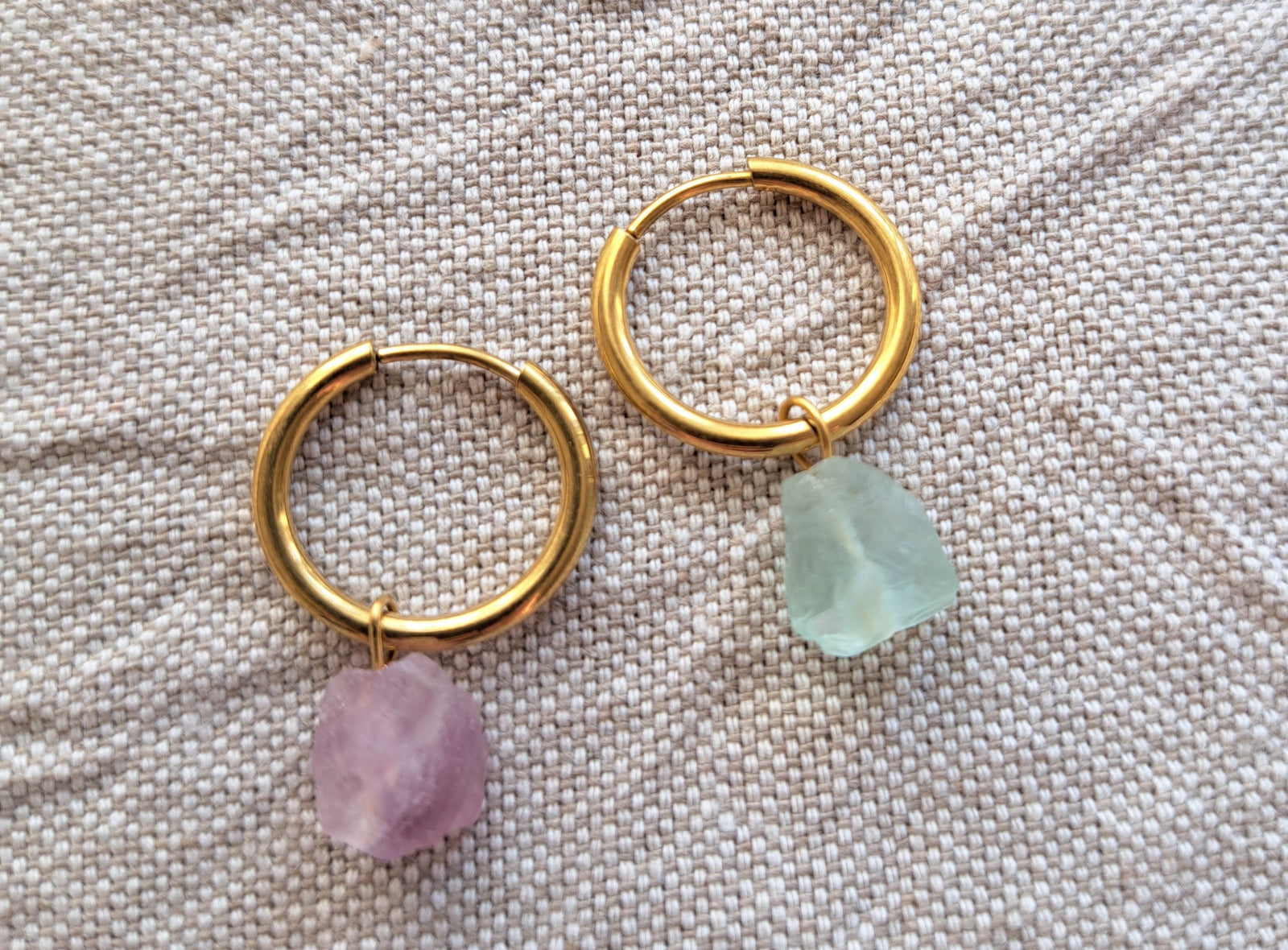 Créoles fluorite acier inoxydable - Doré ou argenté