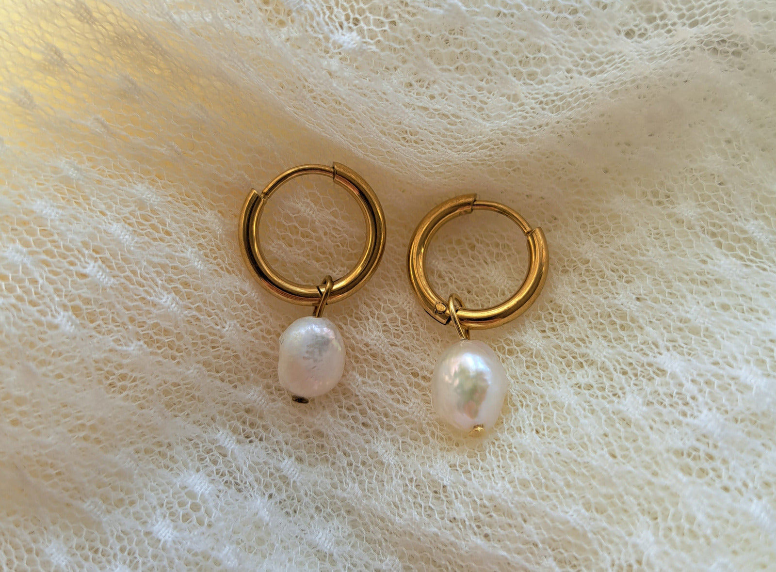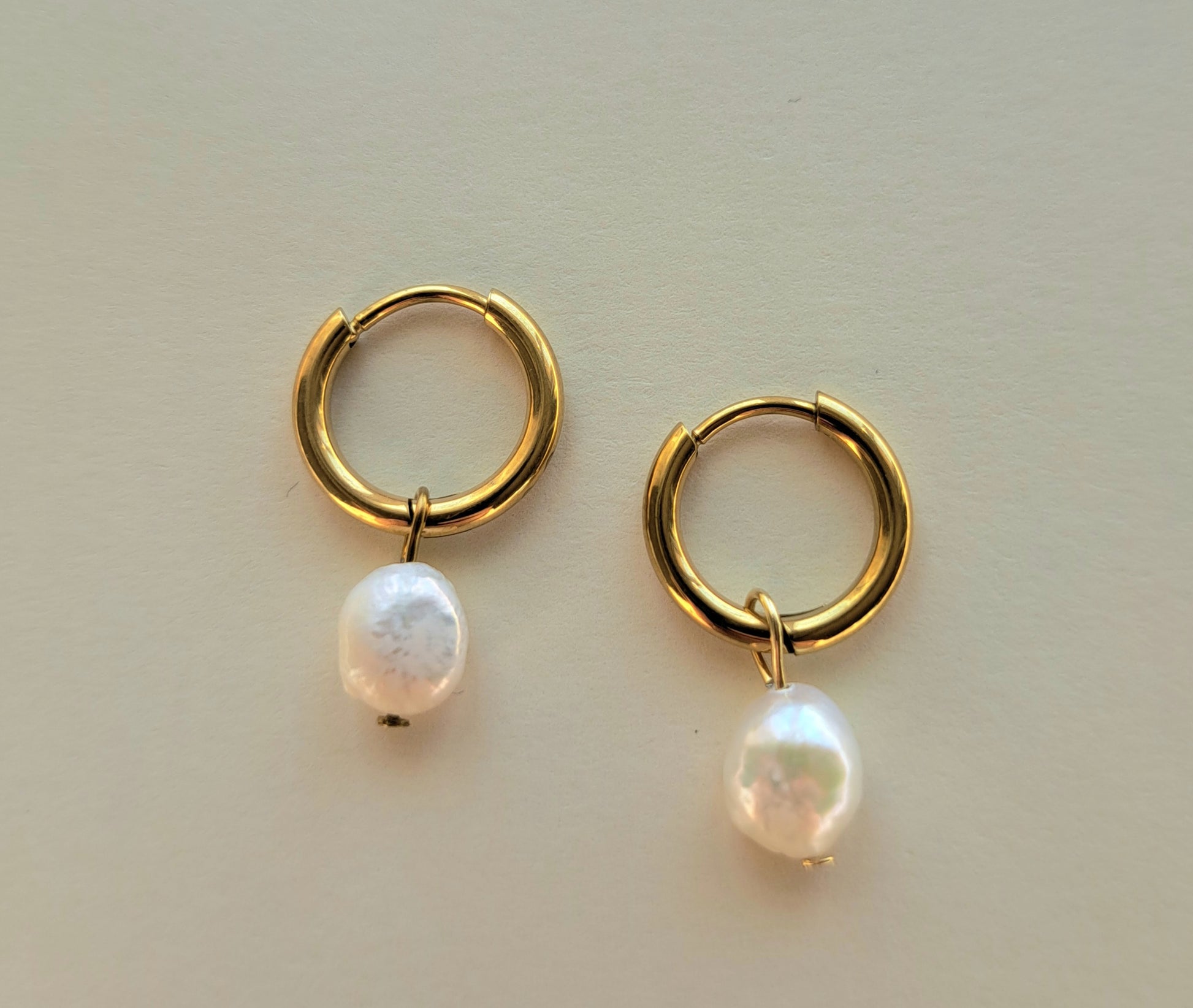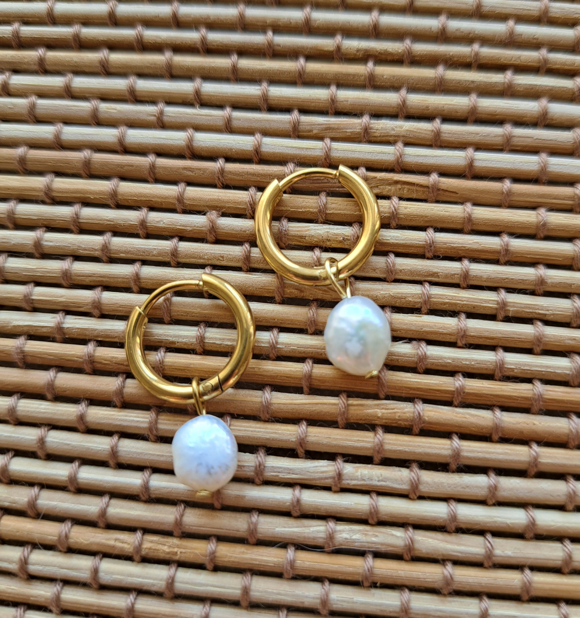 Créoles perles d'eau douce acier inoxydable - Doré ou argenté
