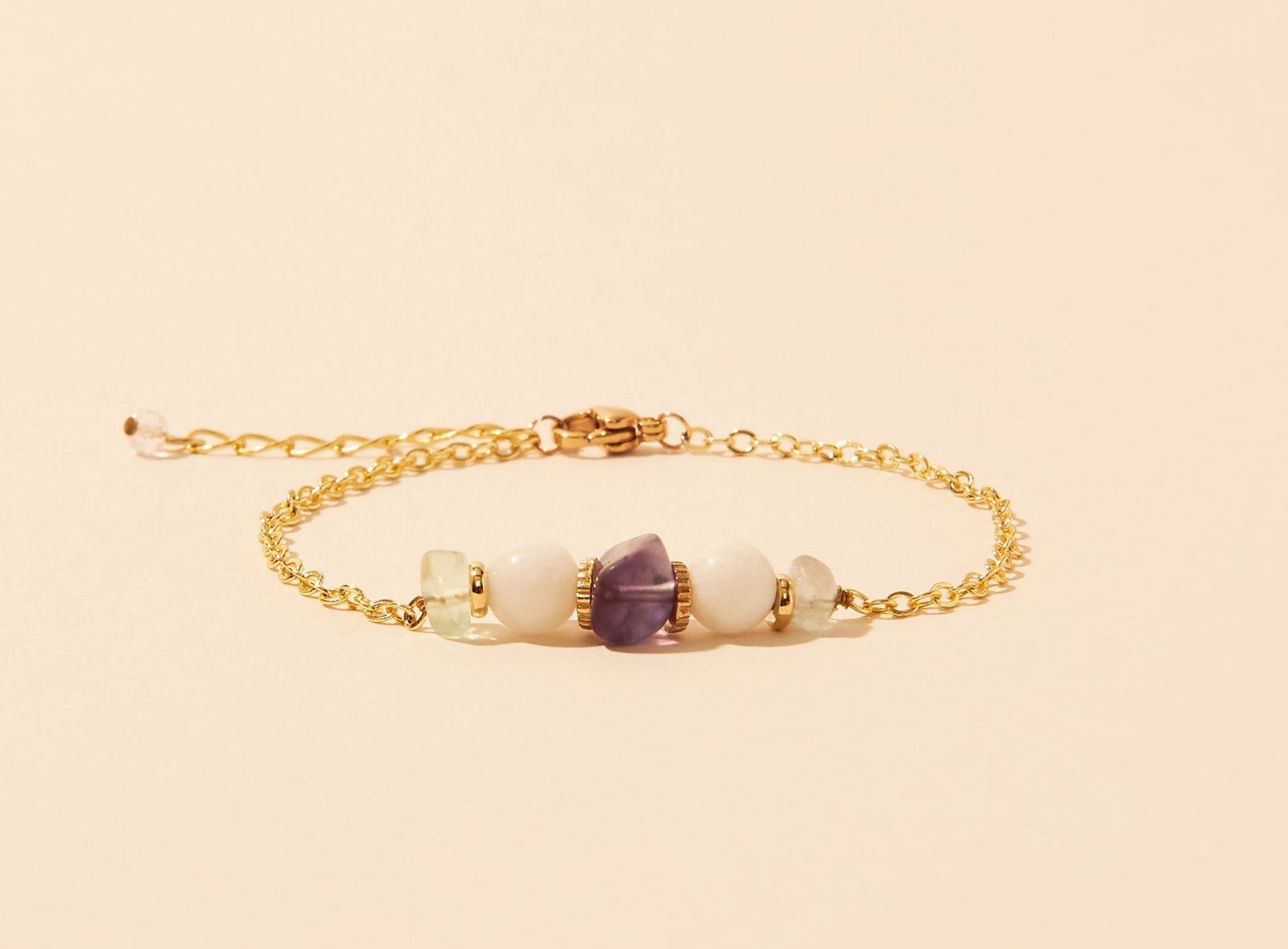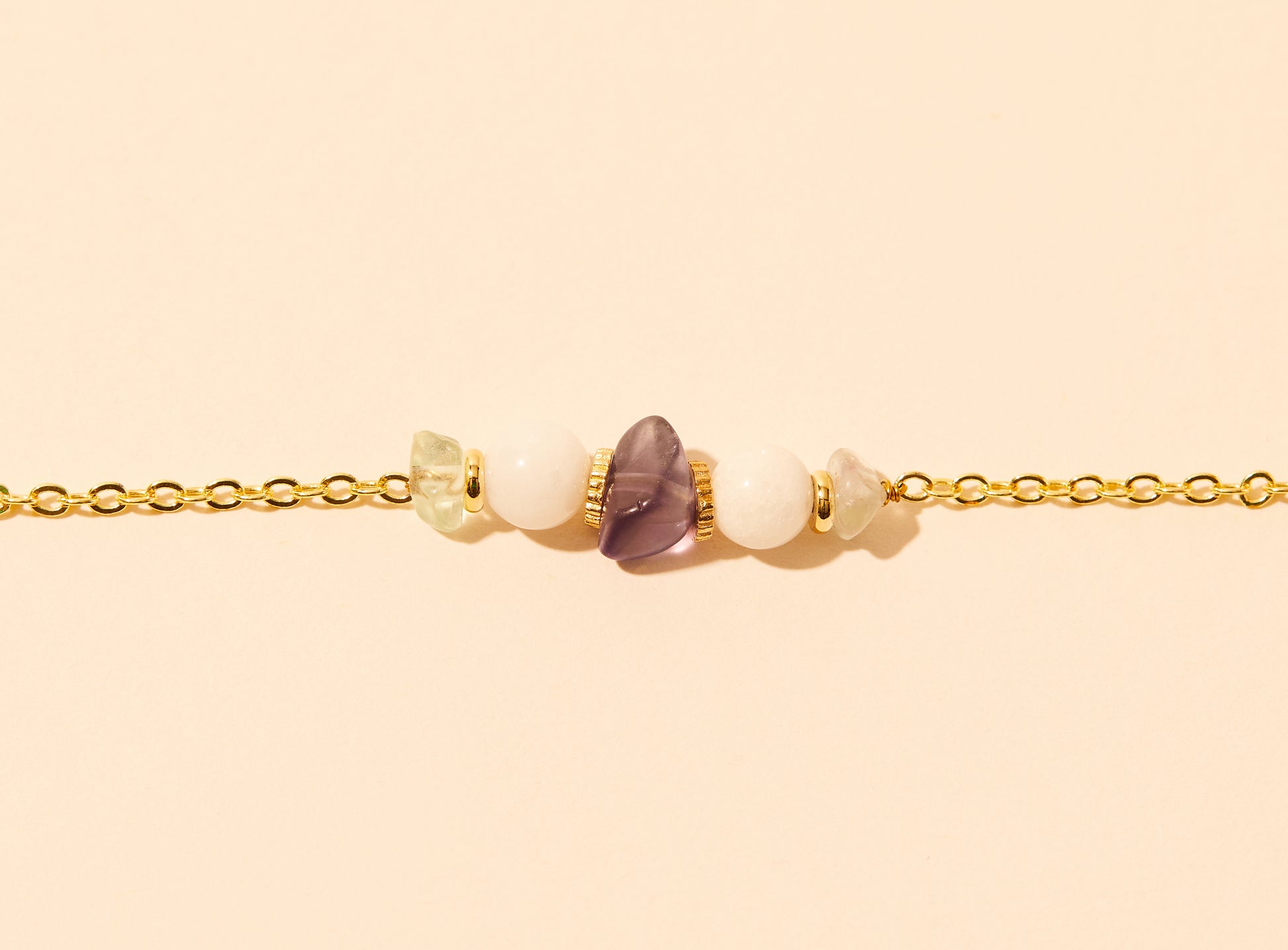 The Virgo bracelet is made of Moonstone and Fluorite.