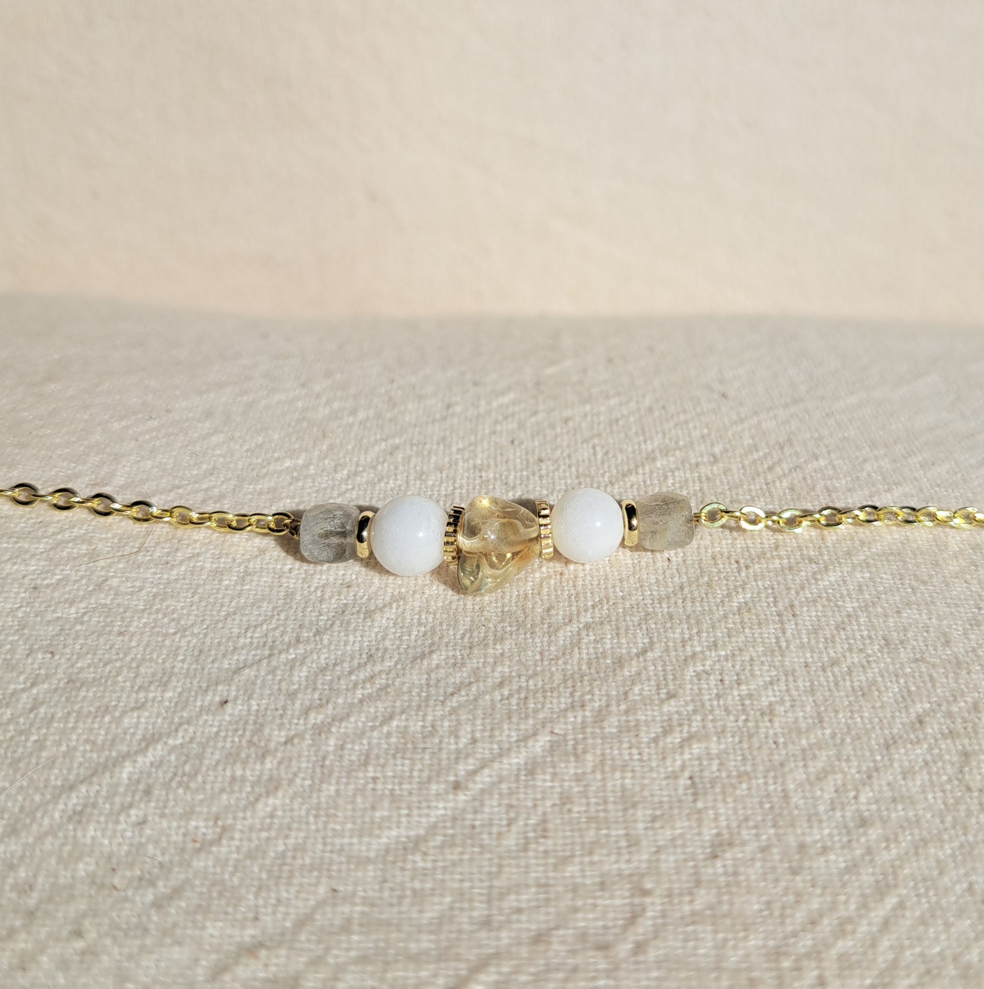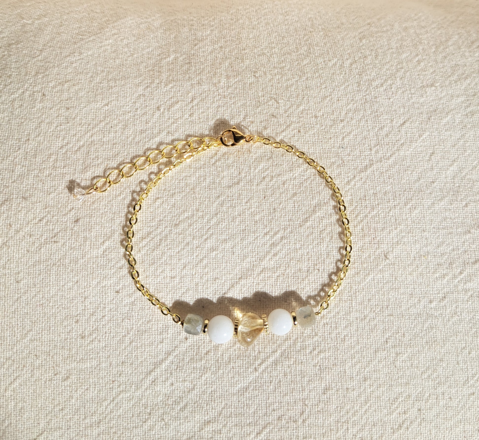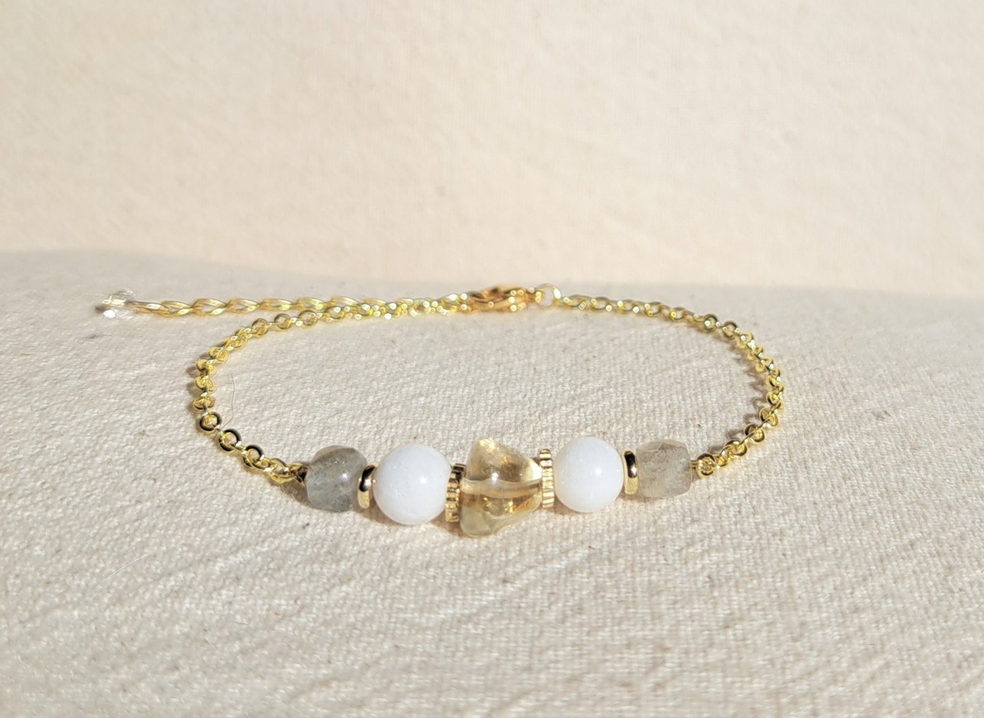 The Cancer bracelet is made of Moonstone, Citrine and Labradorite.