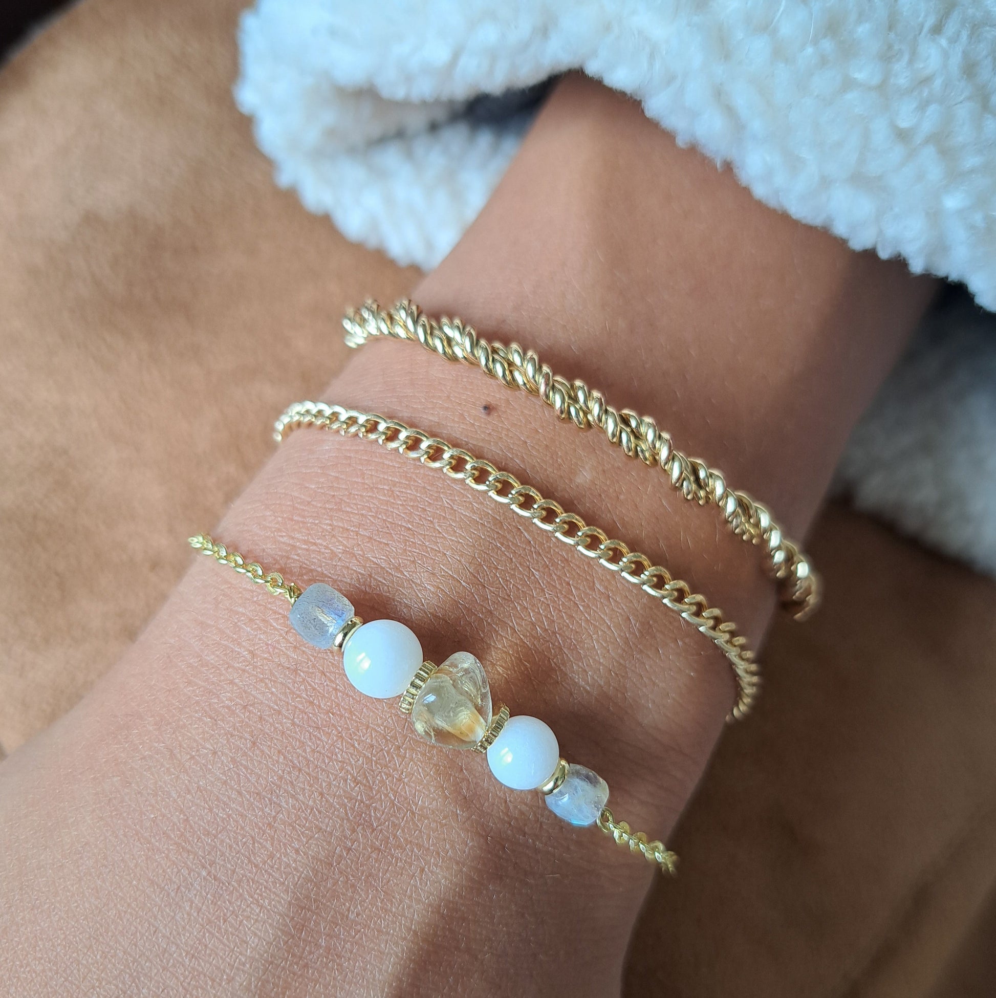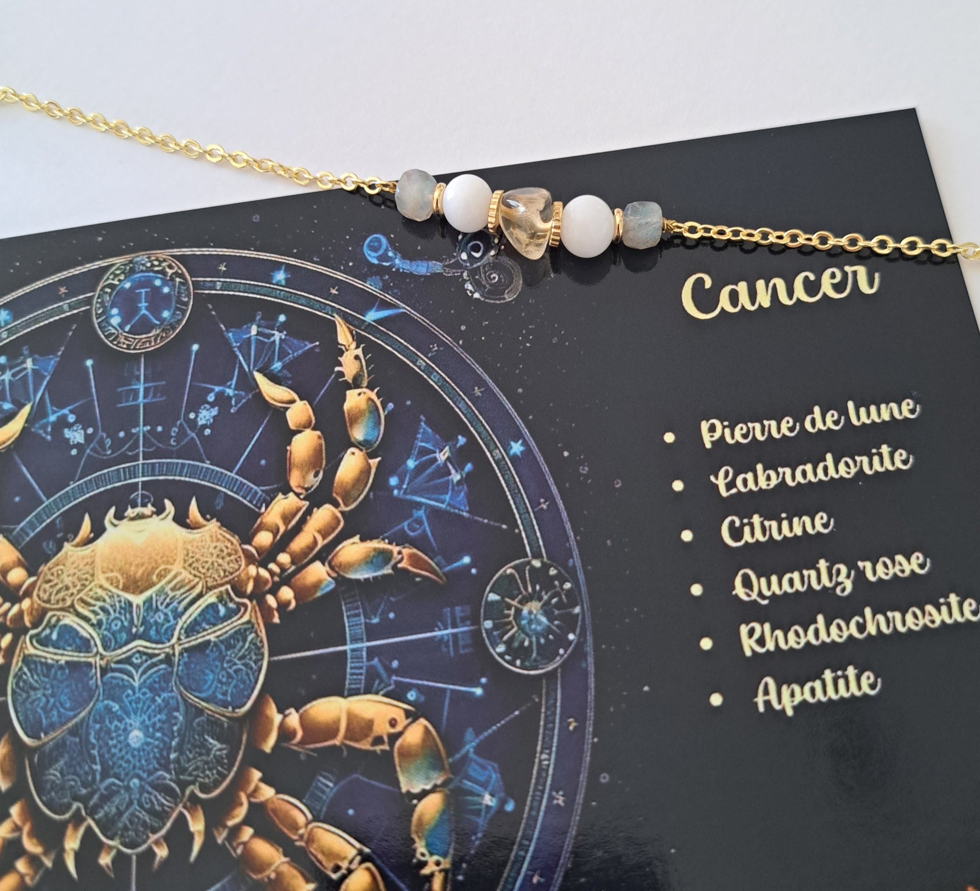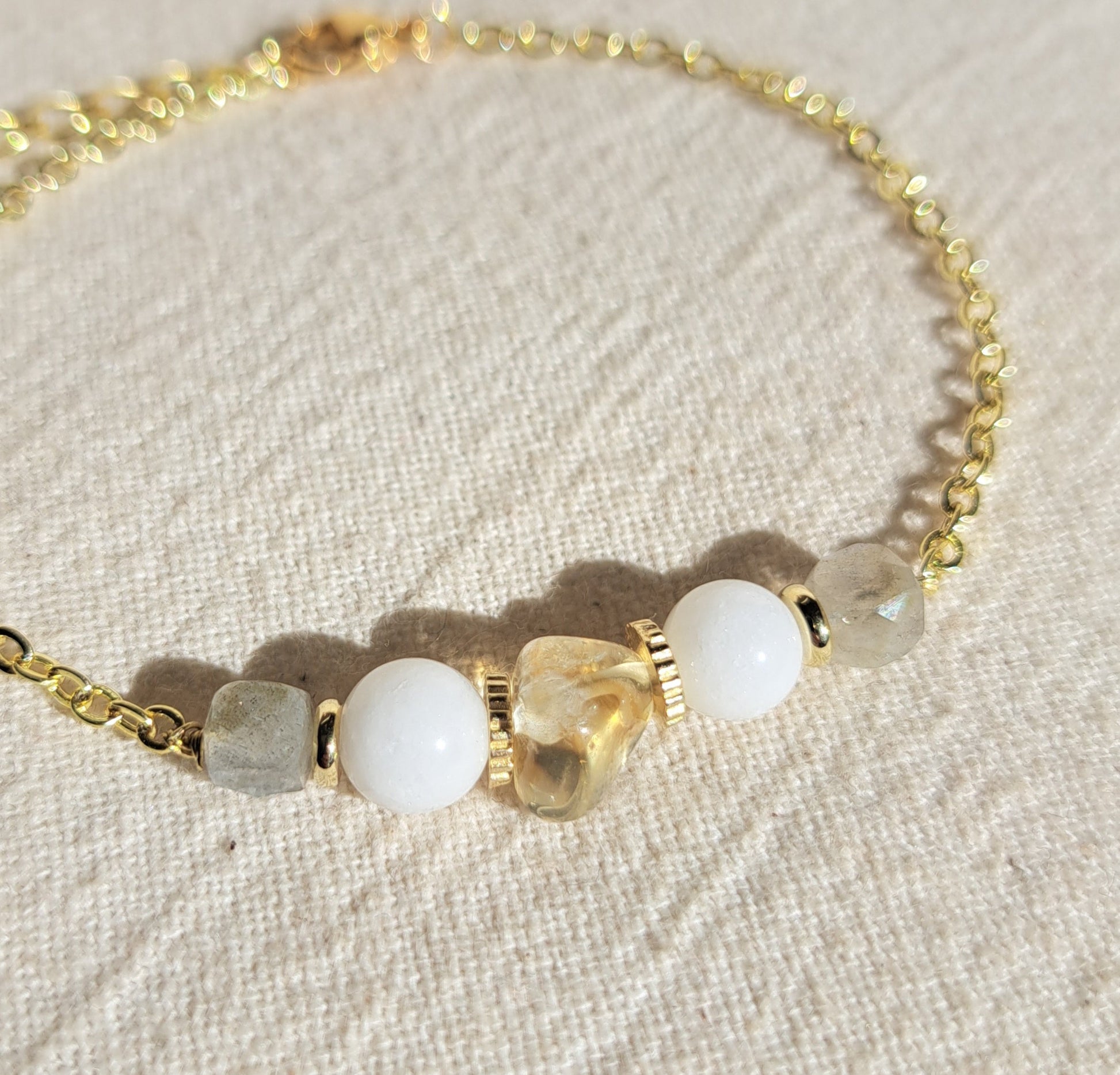 The Cancer bracelet is made of Moonstone, Citrine and Labradorite.