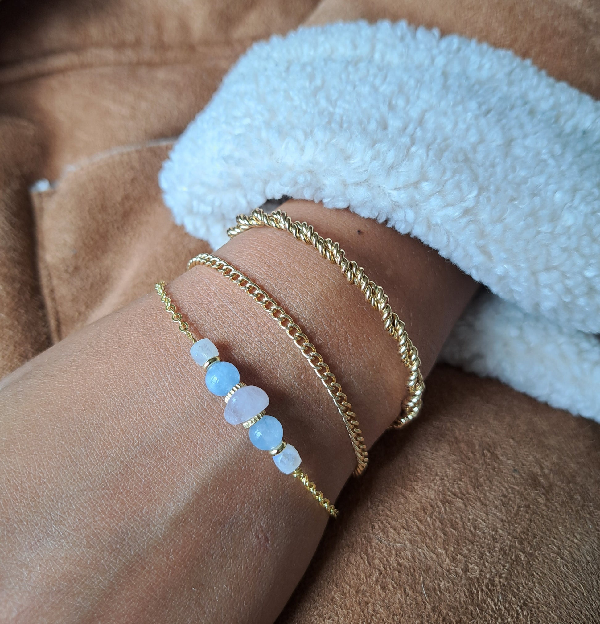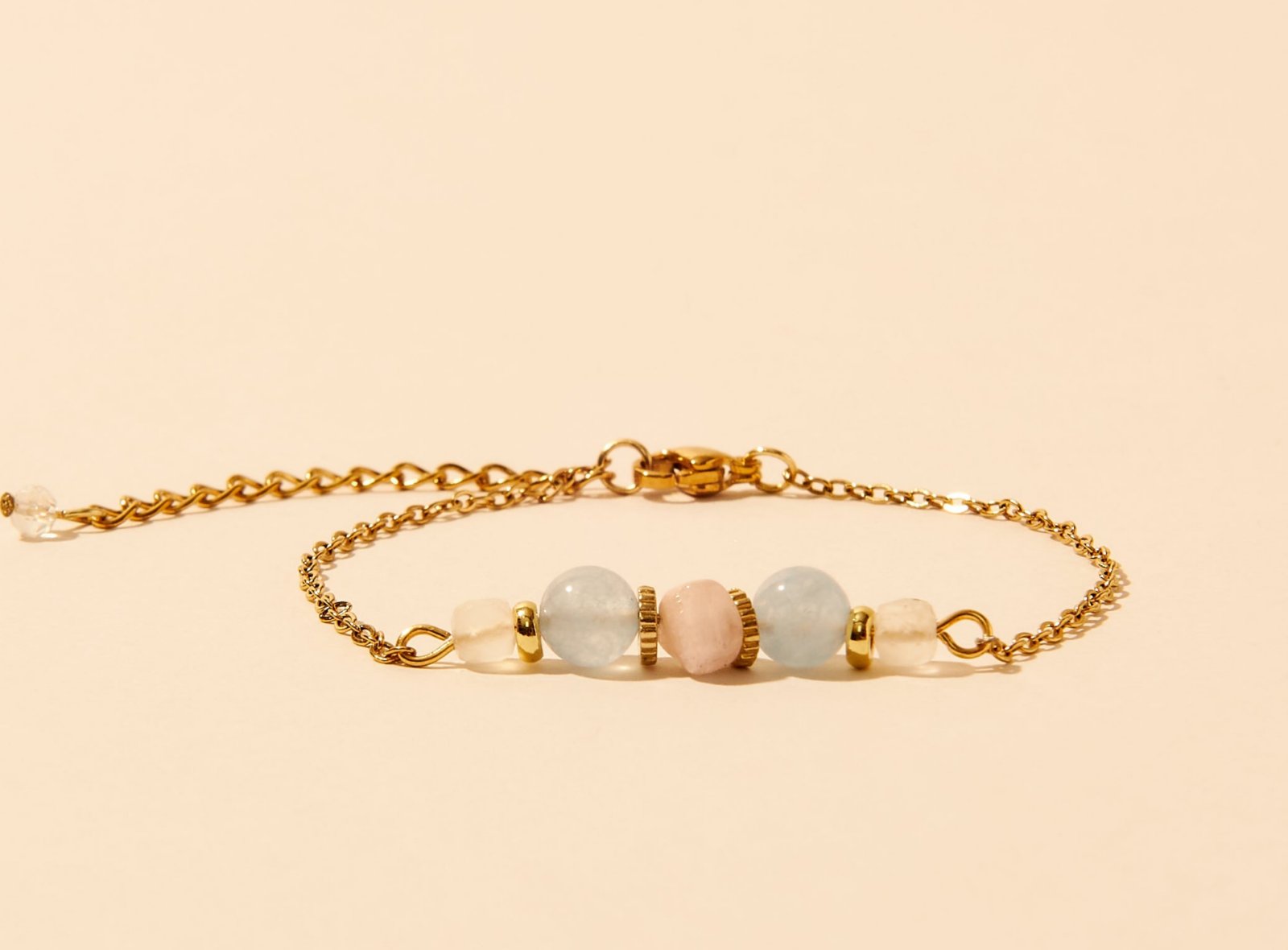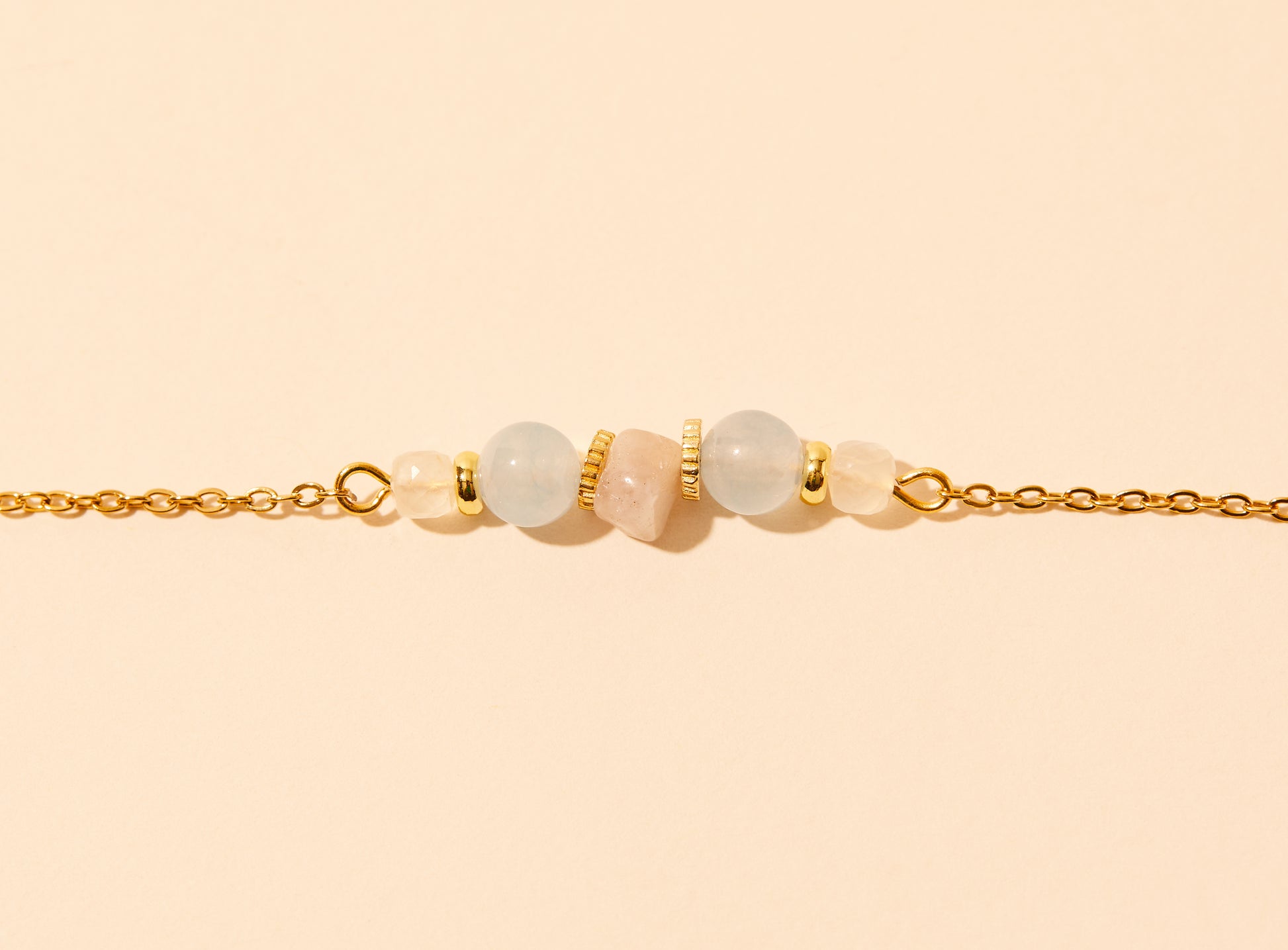 The Pisces bracelet is made of Moonstone, Aquamarine and Amethyst.