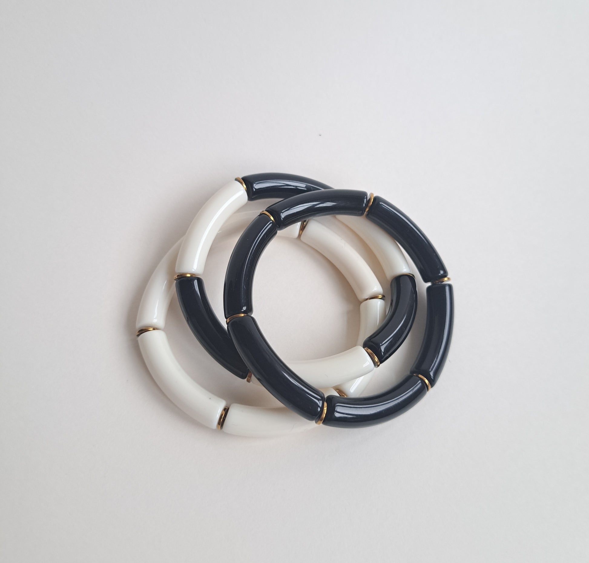 Le lot est composé d'un bracelet noir et doré, un noir-crème et doré et un crème et doré.