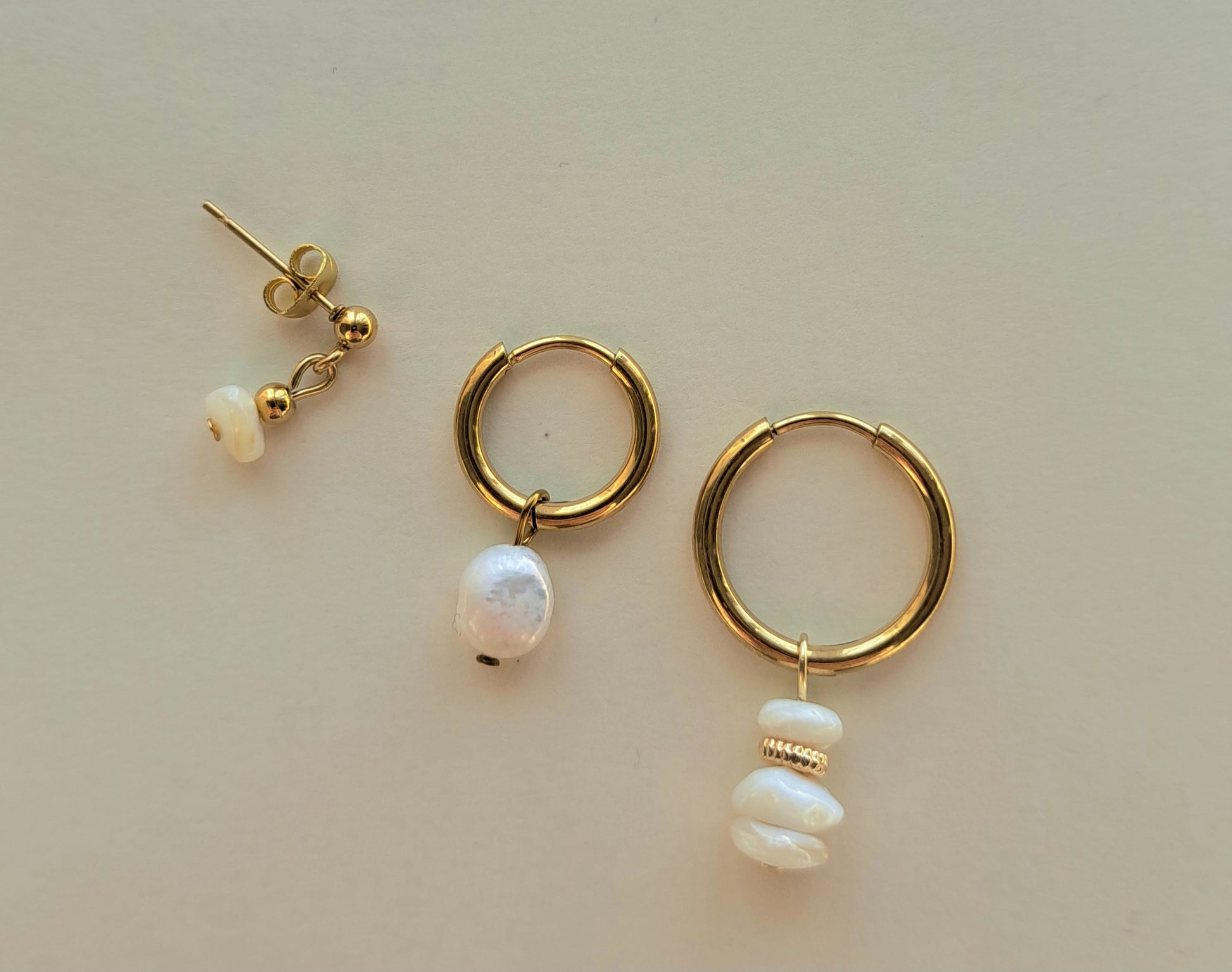 Set 3 boucles d'oreilles nacre - Mix and Match - Doré ou argenté