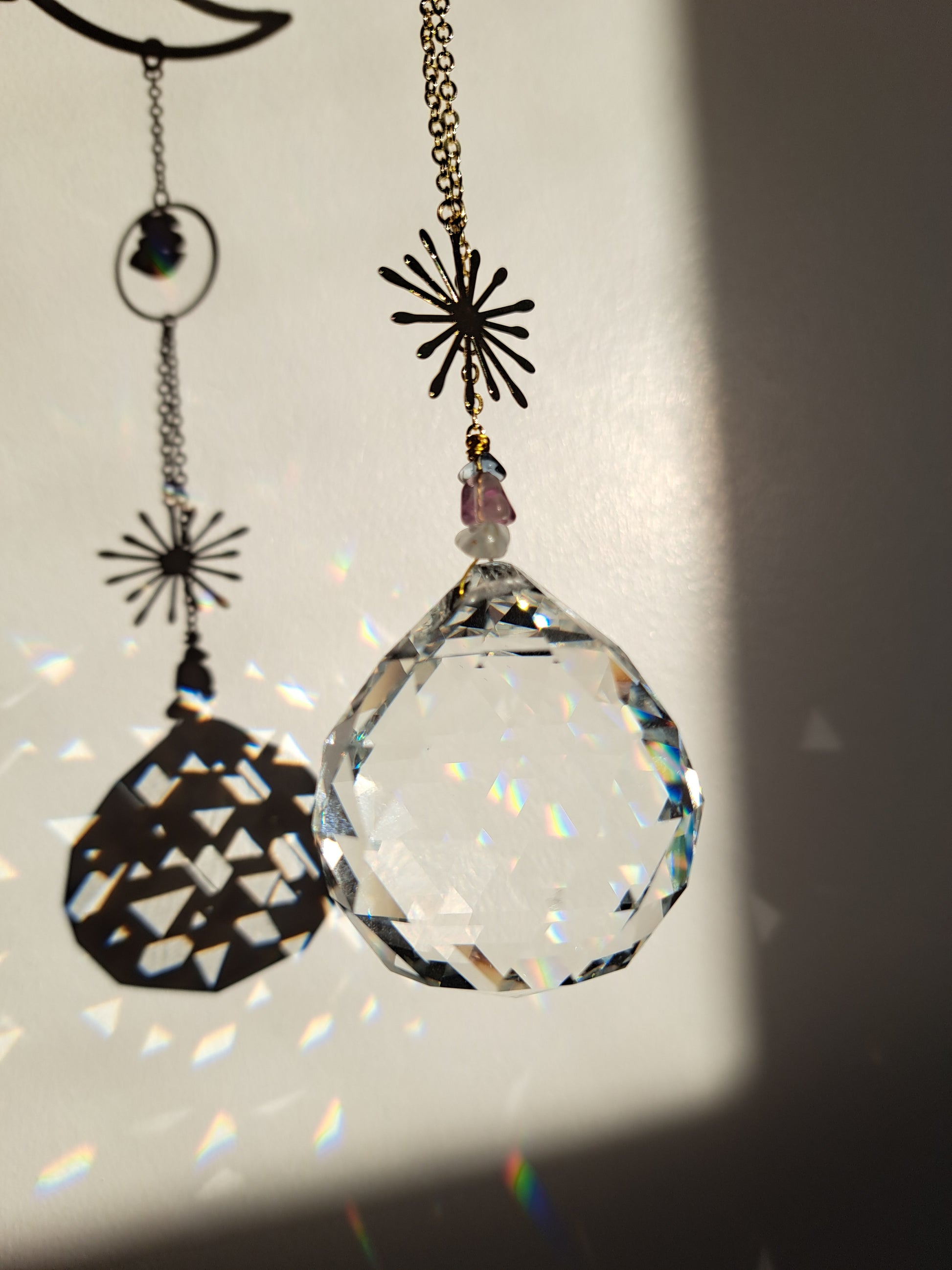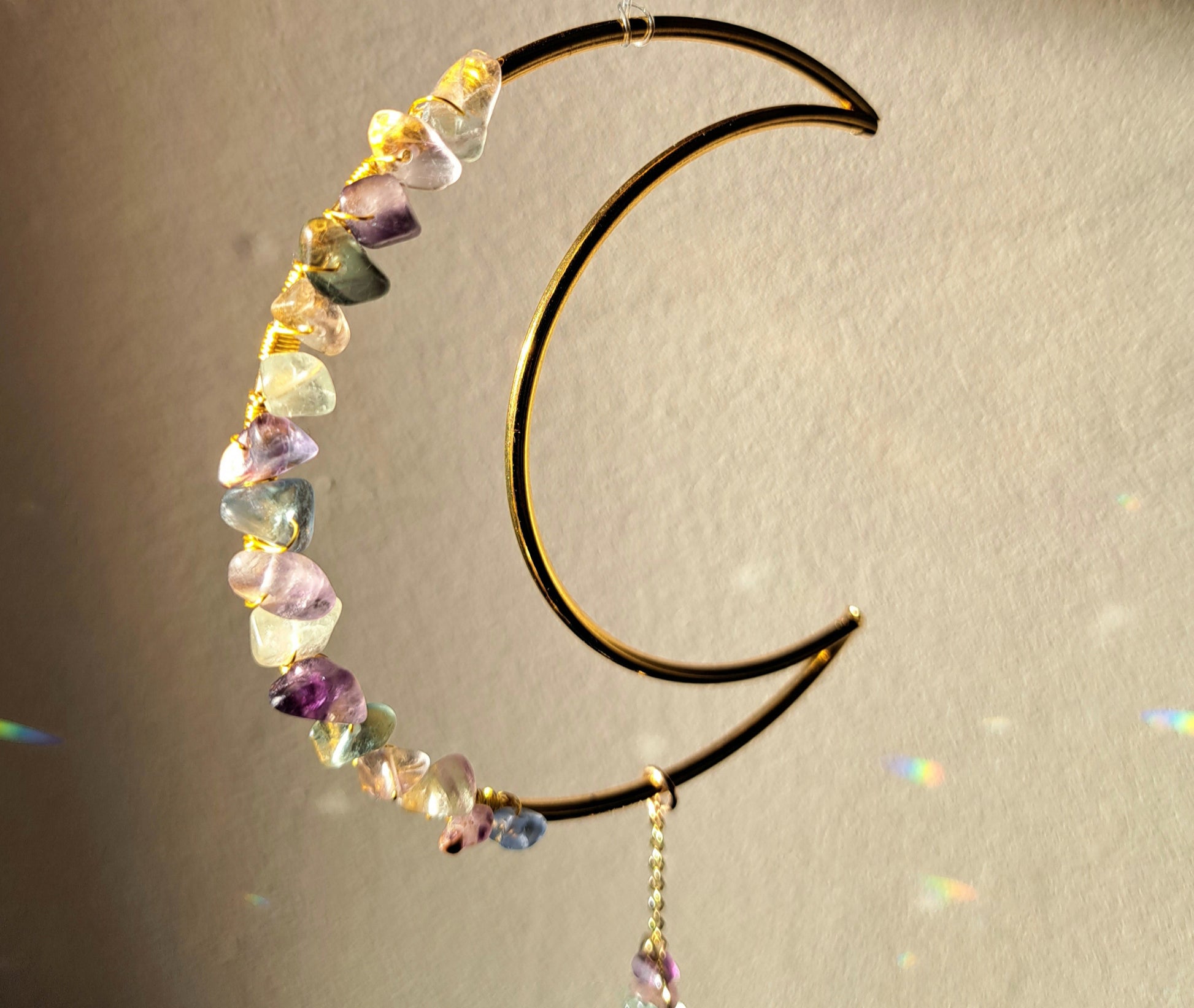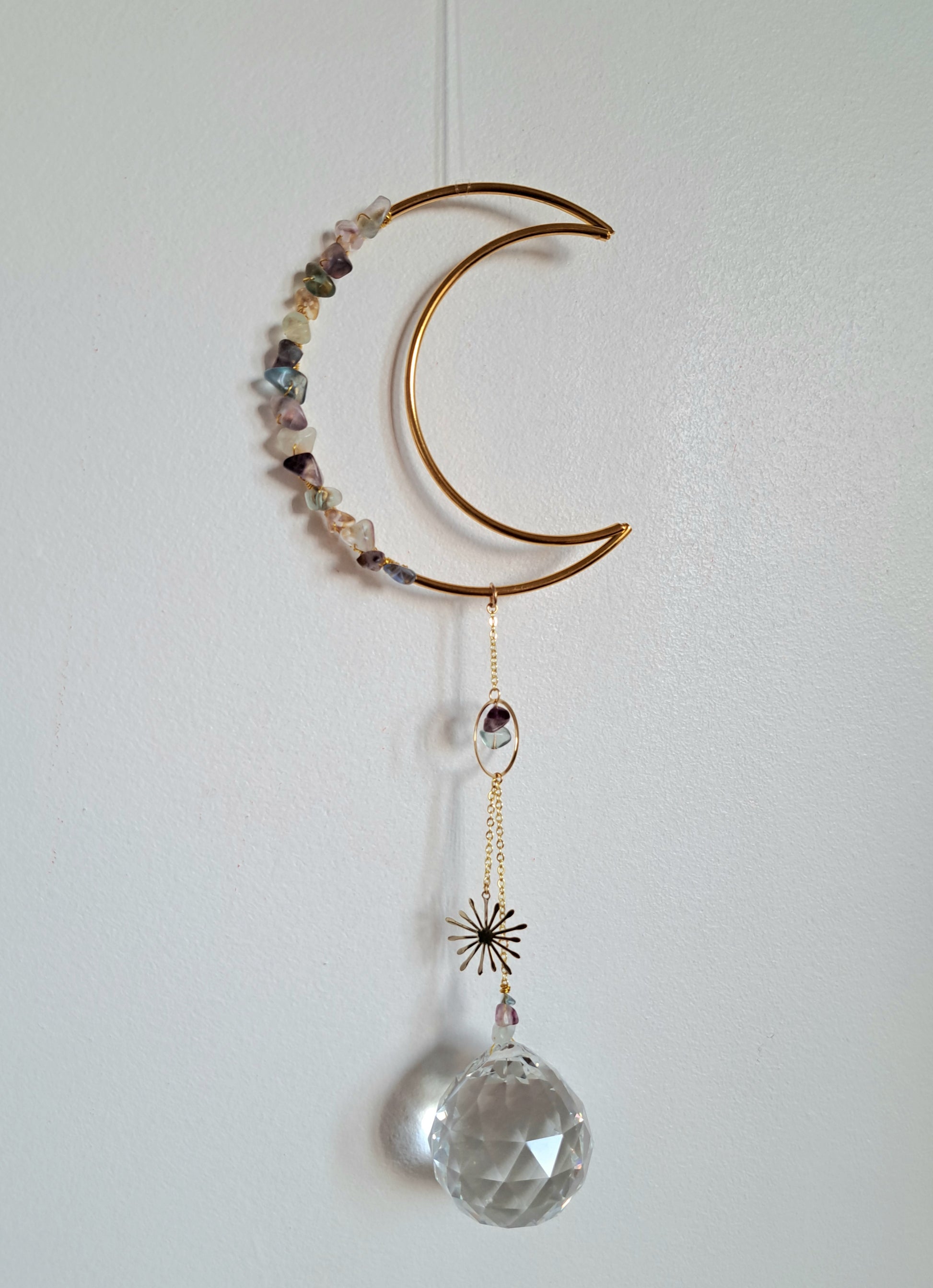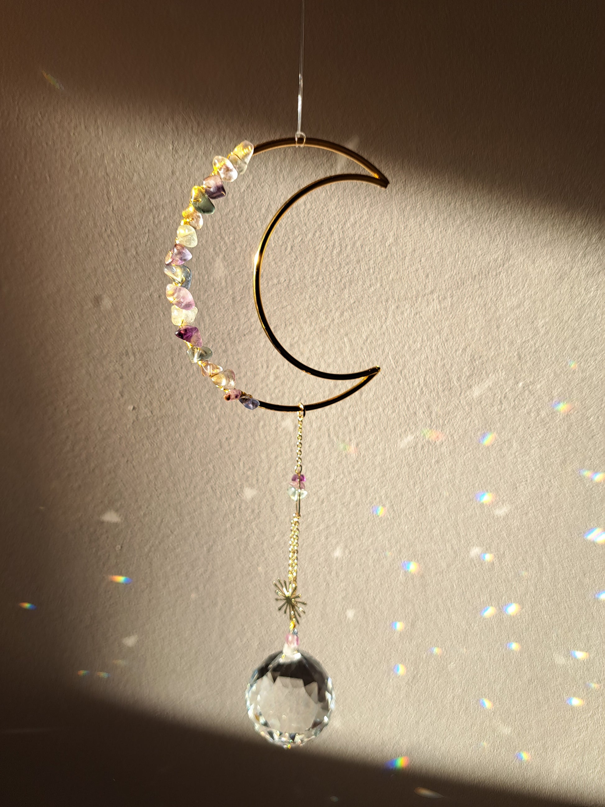 Attrape soleil, suspension soleil, décoration soleil, décoration lune, décoration enfant, décoration chambre, attrape soleil chambre, prisme soleil, décoration fluorite, décoration pierres précieuses, décoration pierres, décoration perles, décoration dorée, suspension dorée, suspension perles, déco maison, idée cadeau maison, idée cadeau appartement, idée cadeau femme, idée cadeau noel, idée cadeau anniversaire, cadeau déco, lithothérapie